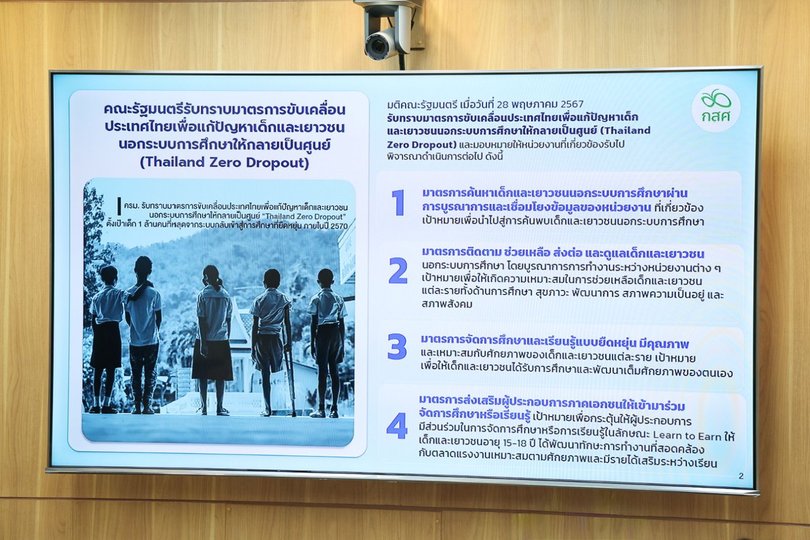 สำหรับการประชุมดังกล่าว ที่ประชุมได้หารือแนวทางการขับเคลื่อนการแก้ไขปัญหาเด็กและเยาวชนนอกระบบการศึกษาในประเด็น 1) การเชื่อมโยงข้อมูลเด็กที่หลุดจากระบบการศึกษากับข้อมูลประกันสังคม เพื่อระบุเด็กโตที่อยู่ในระบบประกันสังคม รวมถึงผู้ปกครองเด็ก เพื่อออกแบบมาตรการดูแลช่วยเหลือรายบุคคล 2) หารือแนวทางการพัฒนาทักษะอาชีพ ทักษะฝีมือแรงงาน สำหรับเด็กและเยาวชน โดยหน่วยฝึกของกระทรวงแรงงาน 3) แนวทางการปรับรูปแบบ หลักเกณฑ์ ระเบียบ ที่เอื้อให้ผู้ประกอบการหรือภาคเอกชน สามารถร่วมจัดการศึกษาควบคู่การมีรายได้ (Learn to Eaarn) 4) แนวทางการขอให้อาสาสมัครแรงงาน ทำหน้าที่เป็นผู้สำรวจในการสำรวจหรือทำแผนดูแลช่วยเหลือเด็กเป็นรายกรณี