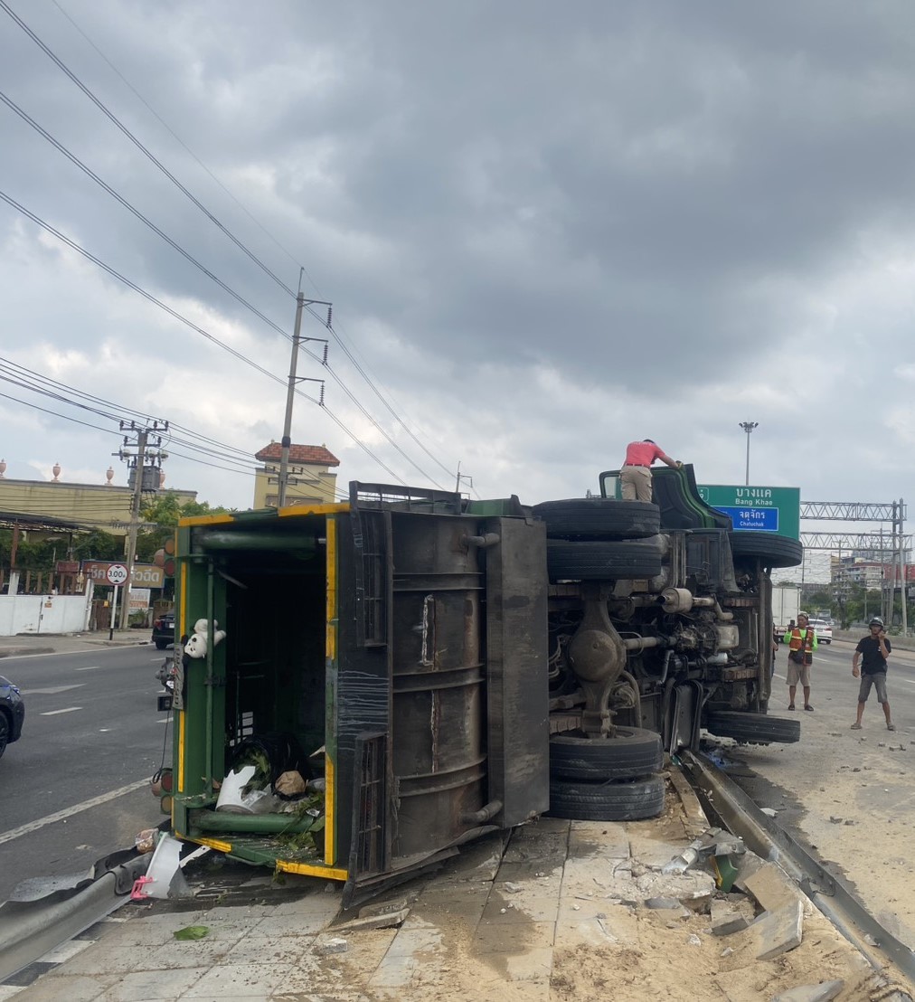 10.00 น. รถขยะพลิกตะแคง! ถนนกาญจนาภิเษก ขาออก ก่อนถึงต่างระดับบางแค (เพชรเกษม) อุบัติเหตุ รถขยะเสียหลักพลิกตะแคง อยู่บนเกาะกลาง ระหว่างช่องทางหลัก กับคู่ขนาน อยู่ระหว่างดำเนินการเคลื่อนย้าย รถติดมาก ท้ายอยู่ใต้ต่างระดับกัลปพฤกษ์ #รายงานจราจร #รถติด #อุบัติเหตุ #FM91