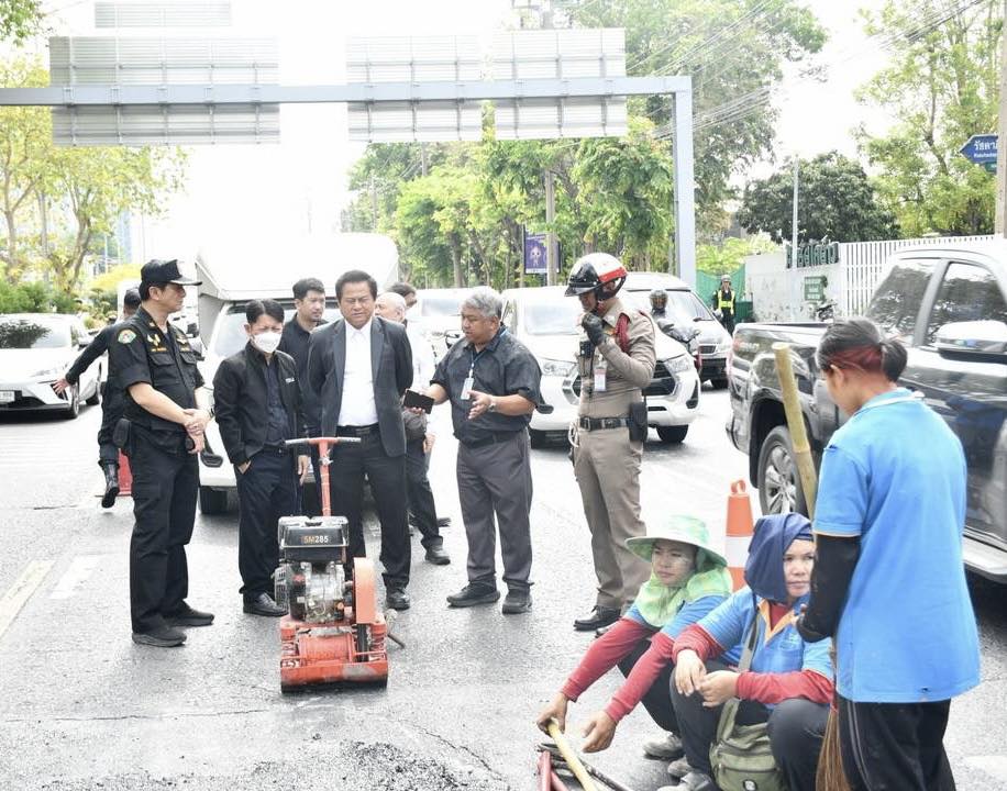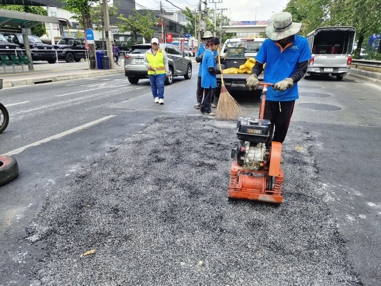 เบื้องต้นได้ประสานสำนักการโยธาเข้าดำเนินการแก้ไข โดยทำการลงแอสฟัลต์ปรับผิวถนนให้กลับมาใช้งานได้ตามปกติ