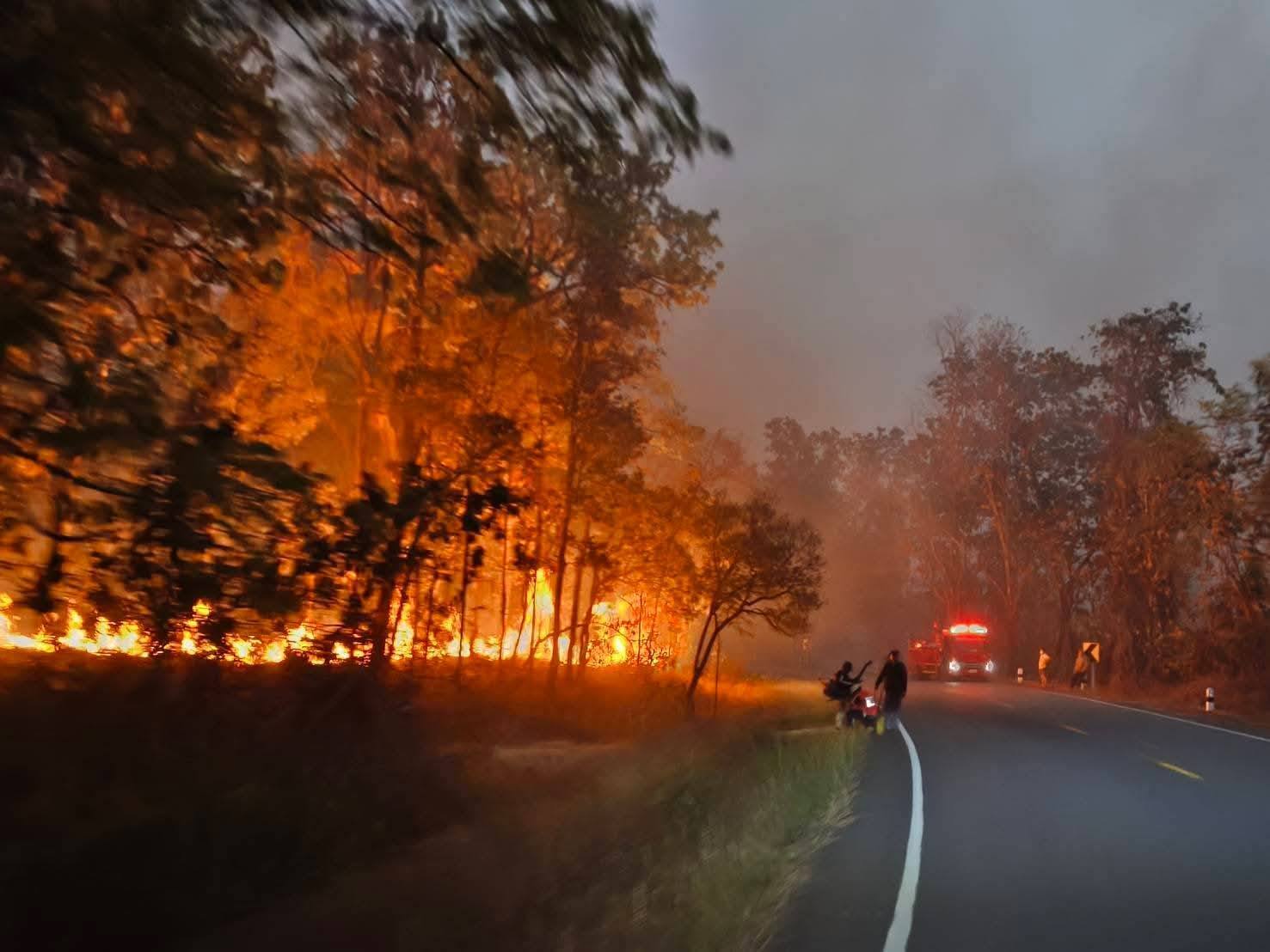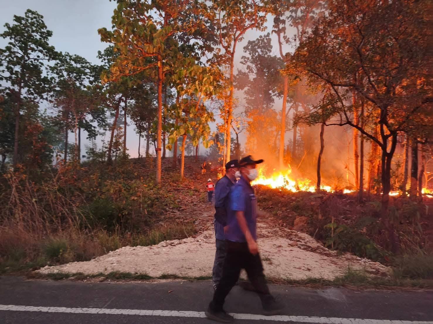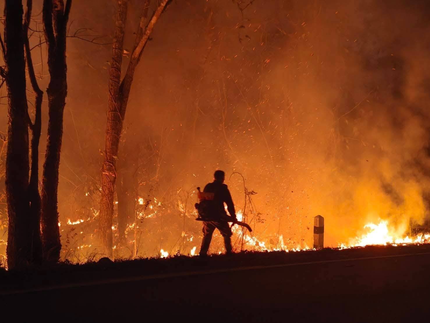 นายอำเภอขุนยวม สั่งการบูรณาการกำลังพล ลงพื้นที่ดับไฟป่าริมทางหลวงหมายเลข 108 เร่งแก้ไขปัญหาหมอกควันในพื้นที่ จ.แม่ฮ่องสอน