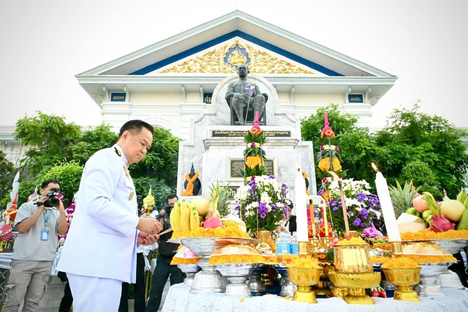 โอกาสนี้ นายอนุทิน นำคณะผู้บริหารระดับสูง สักการะศาลพระชัยมงคล ศาลพระกาฬไชยศรี และสักการะพระอนุสาวรีย์สมเด็จพระเจ้าบรมวงศ์เธอ กรมพระยาดำรงราชานุภาพ โดยหลั่งน้ำจากพระสังข์ที่ป้ายพระนาม “ดำรงราชานุภาพ” เสร็จแล้วเจิม ถวายพวงมาลัย โปรยดอกไม้ และวางพุ่มดอกไม้ถวายสักการะ จุดธูป เทียนที่เครื่องทองน้อย และที่โต๊ะเครื่องสังเวย ผู้บริหารระดับสูงร่วมปักธูปบริวารทั้งหมดที่เครื่องสังเวย โหร พราหมณ์ อ่านคำบวงสรวงเพื่อถวายสักการะ จบแล้ว นายอนุทิน กล่าวคำสดุดี และตรวจเยี่ยมแถวข้าราชการและพนักงานรัฐวิสาหกิจ เป็นอันเสร็จพิธีวางพุ่มดอกไม้ถวายสักการะฯ