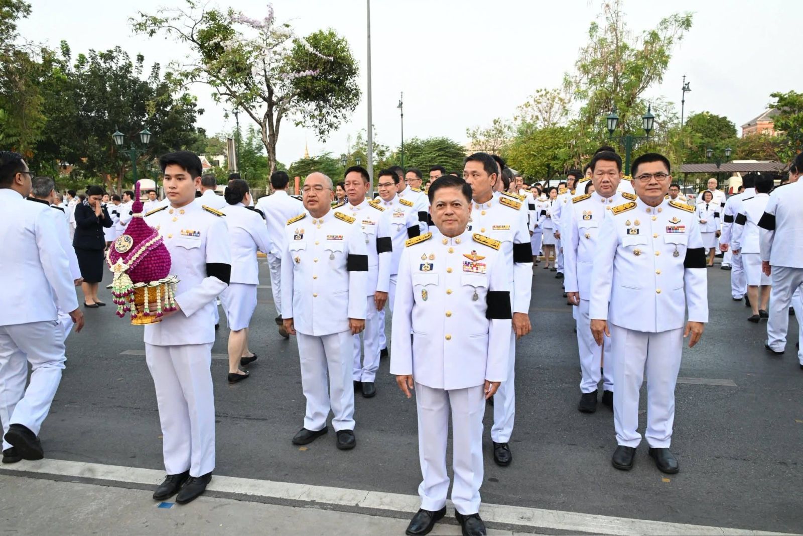 โดยมี นายอรรษิษฐ์ สัมพันธรัตน์ ปลัดกระทรวงมหาดไทย นางจิณณารัชช์ สัมพันธรัตน์ นายกสมาคมแม่บ้านมหาดไทย คณะผู้บริหารระดับสูงของกระทรวงมหาดไทย อธิบดี หัวหน้าหน่วยงานรัฐวิสาหกิจ ข้าราชการ พนักงานรัฐวิสาหกิจ คณะกรรมการบริหารและสมาชิกสมาคมแม่บ้านมหาดไทย นายวิชัย ศรีขวัญ นายฉัตรชัย พรหมเลิศ อดีตปลัดกระทรวงมหาดไทย สมาคมนักปกครองแห่งประเทศไทย สมาคมข้าราชการบำนาญ และผู้แทนหน่วยงานภาครัฐและภาคเอกชน เข้าร่วมพิธี