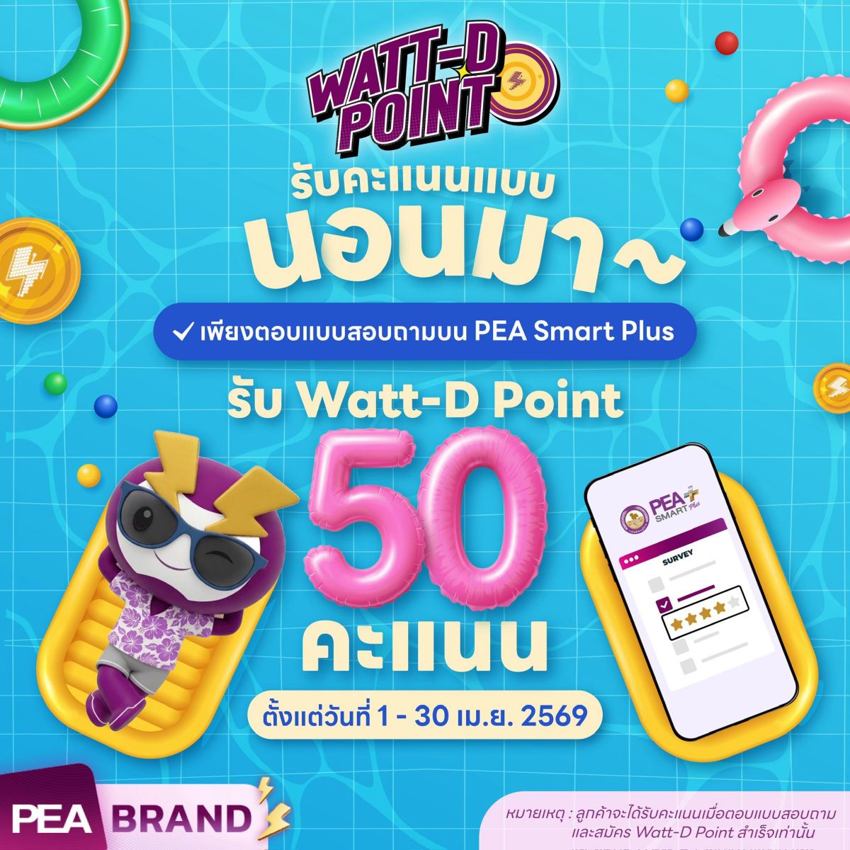เพียงตอบแบบสอบถามบน PEA Smart Plus รับ Watt-D Point ไปเลย 50 คะแนน!