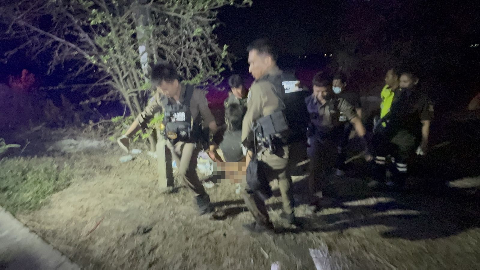 ที่เกิดเหตุพบชายวัยรุ่นนั่งอยู่ข้างทาง โดยมีเจ้าหน้าที่มูลนิธิร่วมกตัญญู สอบถามอาการและขอดูบาดแผลที่บริเวณแขนทั้งสองข้าง ทราบชื่อภายหลังว่า นายพัน (นามสมมุติ) อายุ 23 ปี ทำงานอยู่ที่โรงงานกาแฟ หน้าเทศบาลตำบลขุนศรี โดยทางเจ้าหน้าที่มูลนิธิร่วมกตัญญู พยายามที่จะเข้าไปทำแผลที่บริเวณแขนทั้งสองข้าง และเห็นว่ามีผ้าพันคอสีขาว พันอยู่บริเวณลำคอ จึงพยายามจะดึงผ้าออก แต่นายพัน (นามสมมุติ) อายุ 23 ปี ขัดขืนไม่ยอมให้เจ้าหน้าที่มูลนิธิและเจ้าหน้าที่กู้ชีพทำบาดแผลให้