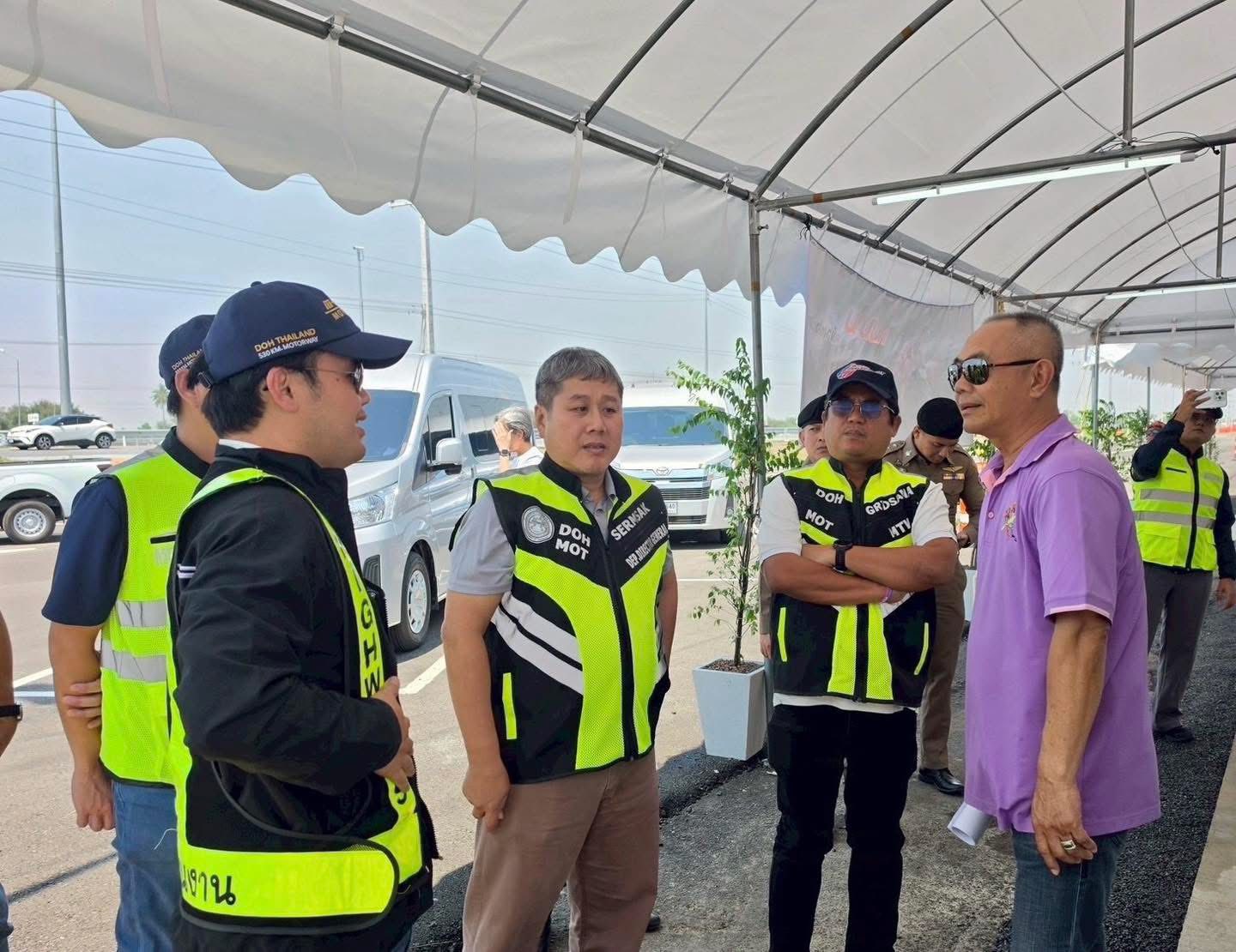 วันที่ 5 เมษายน 2569 – นายเสริมศักดิ์ นัยนันท์ รองอธิบดีฝ่ายบริหาร กรมทางหลวง พร้อมด้วย นายกฤษณะ เพ็ญสมบูรณ์ ผู้อำนวยการกองทางหลวงพิเศษระหว่างเมือง นายนที ขวัญแพ ผู้อำนวยการแขวงนครปฐม นายพรชัย ศิลารมย์ ผู้อำนวยการแขวงทางหลวงกาญจนบุรี และเจ้าหน้าที่ที่เกี่ยวข้อง ลงพื้นที่ตรวจสอบความพร้อมการให้บริการมอเตอร์เวย์ M81 สายบางใหญ่ - กาญจนบุรี เพื่อรองรับการเดินทางของประชาชนในช่วงเทศกาลสงกรานต์ 2569
