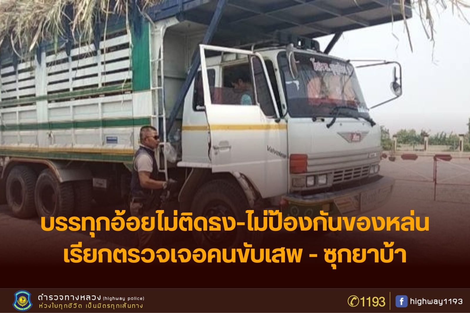 ตำรวจทางหลวงออกตรวจพื้นที่ บนถนนทางหลวง 3502 พื้นที่ อ.ด่านช้าง จ.สุพรรณบุรี พบรถบรรทุกบรรทุกอ้อยไม่ติดธงแดงและไม่มีสิ่งป้องกันของตกหล่น จึงเรียกตรวจ พบชายอายุ 56 ปี คนขับใบอนุญาตขับรถหมดอายุ สังเกตเห็นคนขับมีพิรุธ ตาลอย ไม่มีสมาธิ