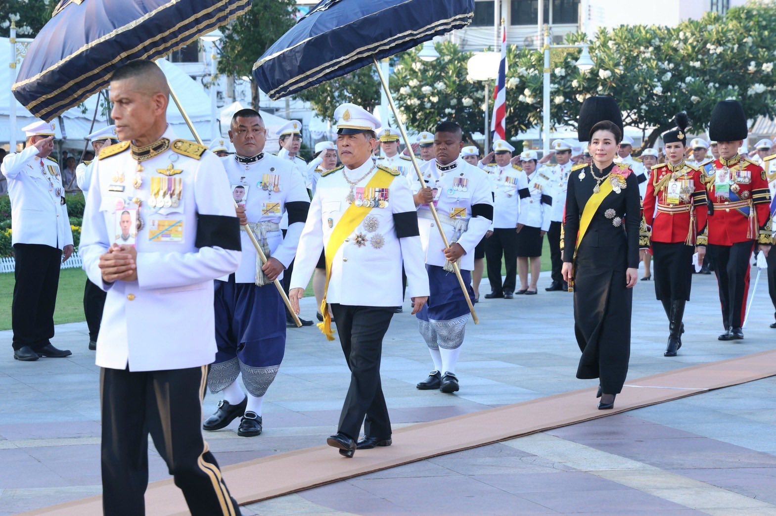 เมื่อเสด็จพระราชดำเนินถึงปฐมบรมราชานุสรณ์ พระบาทสมเด็จพระเจ้าอยู่หัว ทรงวางพุ่มดอกไม้ส่วนพระองค์ สมเด็จพระนางเจ้า ฯ พระบรมราชินี ทรงวางพุ่มดอกไม้ส่วนพระองค์ เสร็จแล้ว พระบาทสมเด็จพระเจ้าอยู่หัว และสมเด็จพระนางเจ้า ฯ พระบรมราชินี ทรงจุดธูปเทียนเครื่องนมัสการทองทิศ และทรงจุดธูปเทียนเครื่องทองน้อยถวายราชสักการะ ทรงกราบ จากนั้น ประทับรถยนต์พระที่นั่ง เสด็จพระราชดำเนินไปยังวัดพระศรีรัตนศาสดาราม และปราสาทพระเทพบิดร พระบรมมหาราชวัง