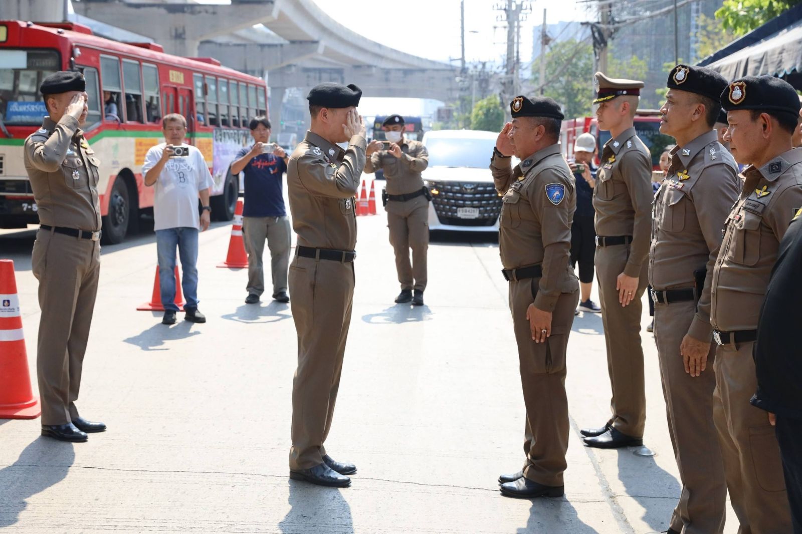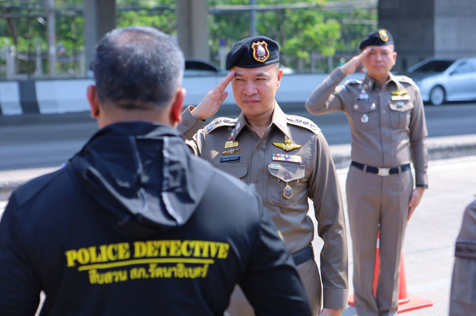 วันนี้ (12 เมษายน 2569) เวลา 10.00 น. พล.ต.ท.ไตรรงค์ ผิวพรรณ รองจเรตำรวจแห่งชาติ ในฐานะโฆษกสำนักงานตำรวจแห่งชาติ พร้อมด้วย พล.ต.ต.ศิริวัฒน์ ดีพอ ผู้บังคับการตำรวจสืบสวนสอบสวนอาชญากรรมทางเทคโนโลยี 1 ในฐานะรองโฆษกสำนักงานตำรวจแห่งชาติ ลงพื้นที่ประชาสัมพันธ์หน่วยบริการประชาชน เพื่ออำนวยความสะดวกด้านการจราจรและการเตรียมความพร้อมการป้องกันและลดอุบัติเหตุทางถนนช่วงเทศกาลสงกรานต์ 2569 บริเวณหน้า สภ.รัตนาธิเบศร์ จ.นนทบุรี โดยมี พ.ต.อ.จิรายุส วานิชกูล รองผู้บังคับการตำรวจภูธรจังหวัดนนทบุรี, พ.ต.อ.พฤฒ จำรูญศาสน์ ผกก.สภ.รัตนาธิเบศร์ ให้การต้อนรับและร่วมตรวจเยี่ยม