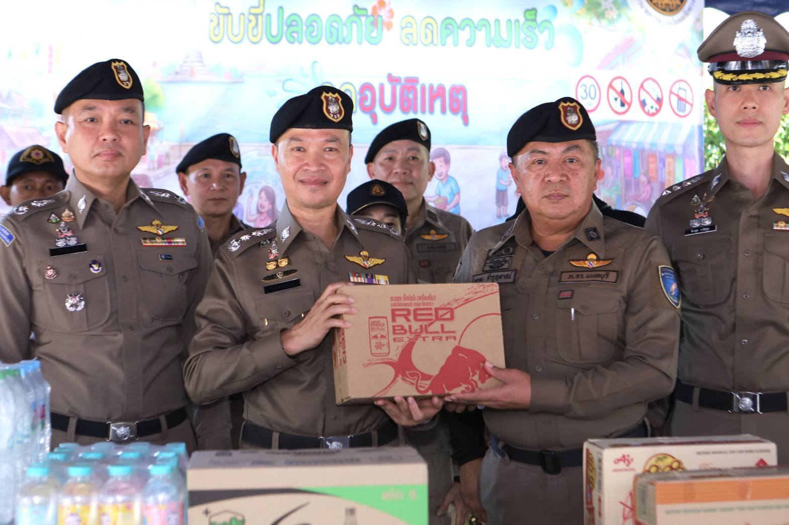 พล.ต.ท.ไตรรงค์ กล่าวว่า ได้นำข้อห่วงใยและกำลังใจของ พล.ต.อ.กิตติ์รัฐ พันธุ์เพ็ชร์ ผู้บัญชาการตำรวจแห่งชาติ มอบให้กับเจ้าหน้าที่ตำรวจผู้ปฏิบัติประจำหน่วยบริการประชาชน เน้นย้ำการให้บริการประชาชนด้วยหัวใจ และร่วมกันดูแลความปลอดภัยในการเดินทางของพี่น้องประชาชนตลอดช่วงเทศกาลสงกรานต์ รวมทั้งประชาสัมพันธ์เน้นย้ำให้ปฏิบัติตามกฎหมายจราจรอย่างเคร่งครัด เพื่อป้องกันการเกิดอุบัติเหตุ ลดความสูญเสีย โดยเฉพาะจากสถิติผลการบังคับใช้กฎหมายข้อหาสำคัญที่เป็นปัจจัยการเกิดอุบัติเหตุ สะสม 2 วัน (10-11 เมษายน 2569) มากที่สุดคือข้อหา ไม่สวมหมวกนิรภัย 34,816 ครั้ง รองลงมาคือ ขับรถเร็วเกิดกฎหมายกำหนด 27,635 ครั้ง, ไม่คาดเข็มขัดนิรภัย 8,581 ครั้ง, ขับรถขณะเมาสุรา 5,687 ครั้ง และขับรถย้อนศร 4,428 ครั้ง