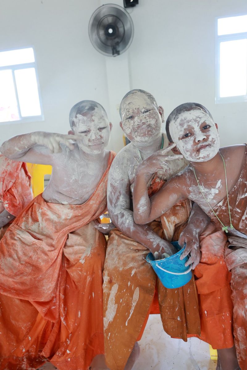 แต่ที่เรียกรอยยิ้มก็คือ เหล่าเณรน้อย ที่มาบวชเรียนภาคฤดูร้อน เอาดินสอพอง ทาตัวหลวงพ่อที่วัดบอกเลยงานนี้เณรน้อยจัดเต็ม ทาจนหลวงพ่อตัวขาว ซึ่งคลิปนี้ พระครูสรการธีรคุณ พัตรสิงห์ ได้นำคลิปนี้มาโพสต์เอาไว้ในเฟสบุ๊คนั่นเอง