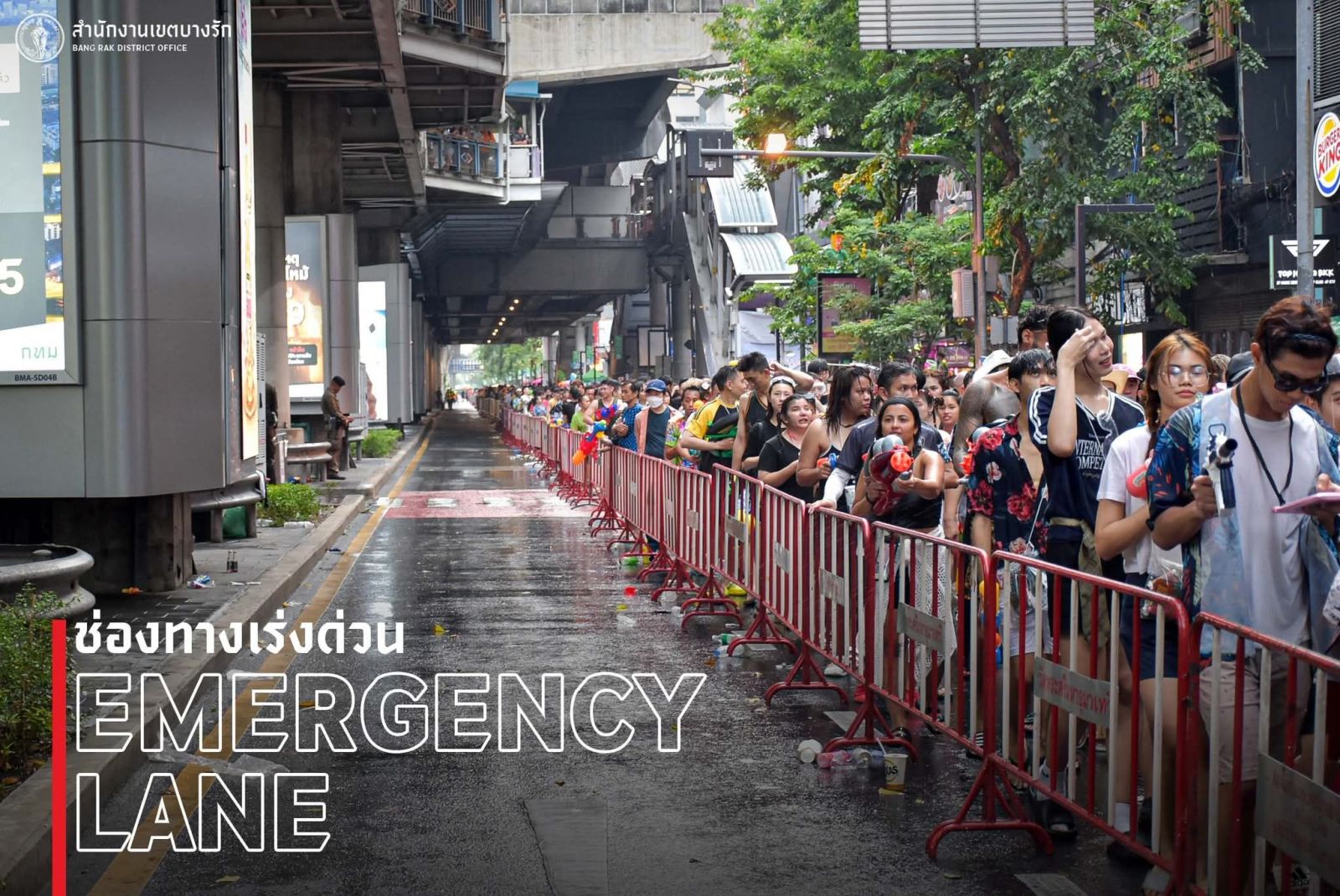 13 เม.ย. 69 เวลา 20.00 น. เฟซบุ๊ก “สำนักงานเขตบางรัก BangRak District Office” โพสต์ภาพและข้อความ “Emergency Lane” เลนฉุกเฉินเพื่อช่วยชีวิต!