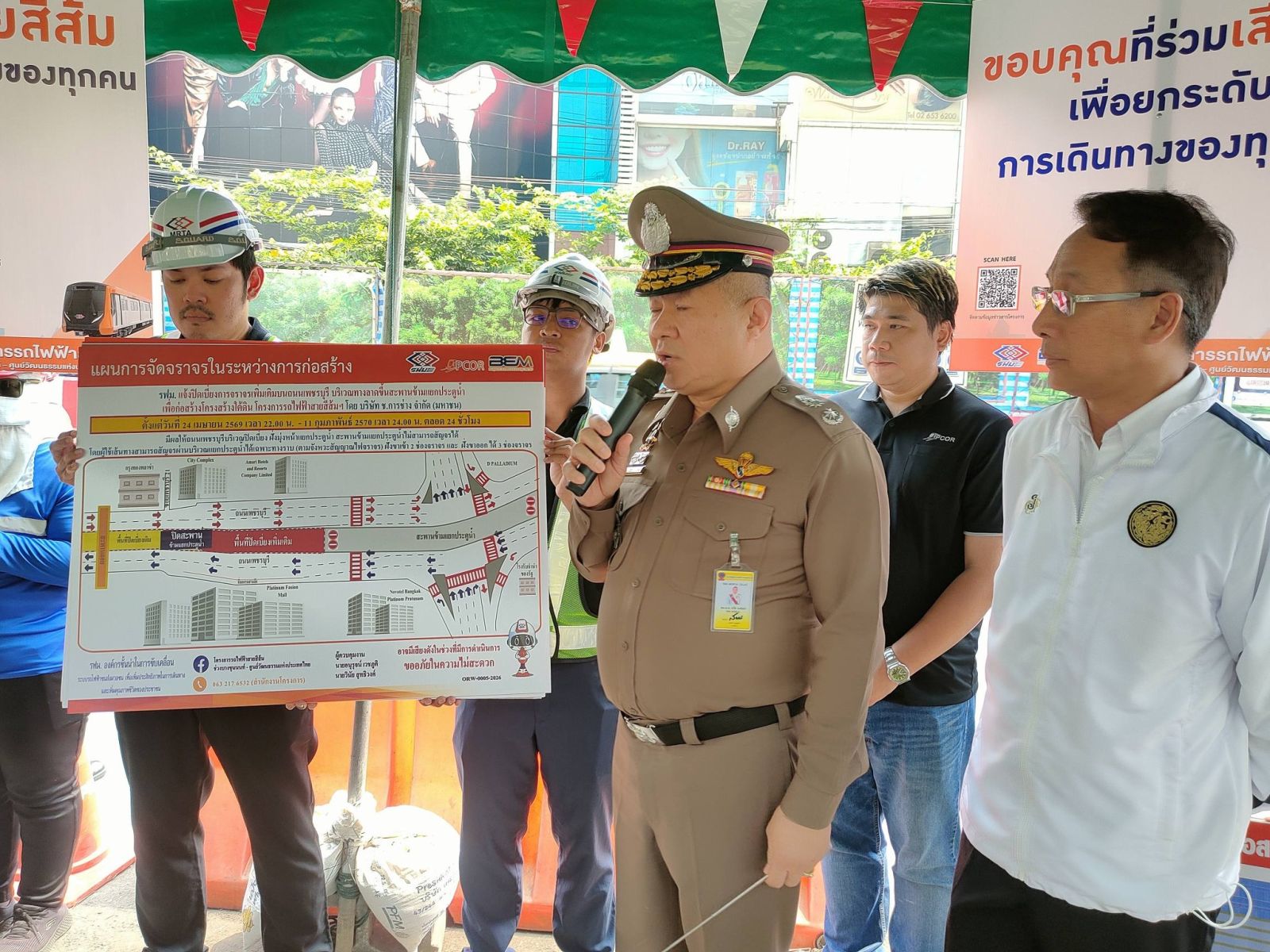 รฟม. - ตำรวจนครบาล เตรียมพร้อมก่อนปิดสะพานข้ามแยกประตูน้ำ 4 ทุ่ม วันที่ 24 เมษายน 2569 ถึงวันที่ 11 กุมภาพันธ์ 2570 ของโครงการรถไฟฟ้าสายสีส้ม ช่วงบางขุนนนท์ - ศูนย์วัฒนธรรมแห่งประเทศไทย แนะนำใช้ 5 เส้นทางเลี่ยง
