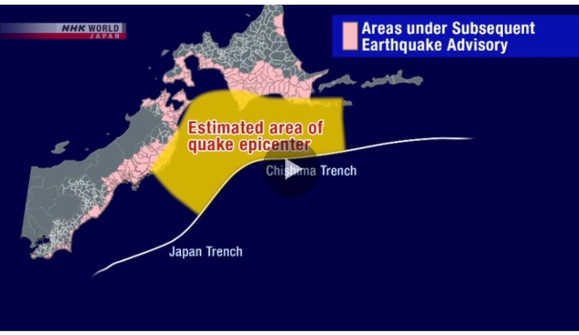 อย่างไรก็ดี กรมอุตุนิยมวิทยาออกประกาศเตือนเพิ่มเติมว่า จากเหตุแผ่นดินไหวข้างต้น มีความเป็นไปได้ที่จะเกิดเหตุแผ่นดินไหวขนาดใหญ่ บริเวณชายฝั่งทะเลแปซิฟิกร่องลึกจิชิมะ (Chishima Trench) และร่องลึกญี่ปุ่น (Japan Trench) ในอีก 1 สัปดาห์ข้างหน้า ซึ่งอาจส่งผลกระทบให้จังหวัดฮอกไกโด และนอกชายฝั่งซันริคุ เกิดเหตุแผ่นดินไหวตามมา ขอให้ประชาชนที่อาศัยใน 7 จังหวัด (ฮอกไกโด อาโอโมริ อิวาเตะ มิยากิ ฟุคุชิมะ อิบารากิ และชิบะ) รวม 182 เมือง เตรียมความพร้อมหากเกิดเหตุการณ์ที่จำเป็นต้องอพยพโดยทันที