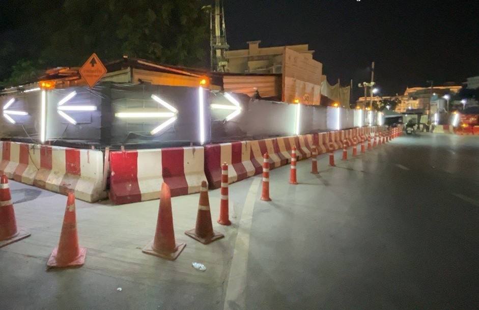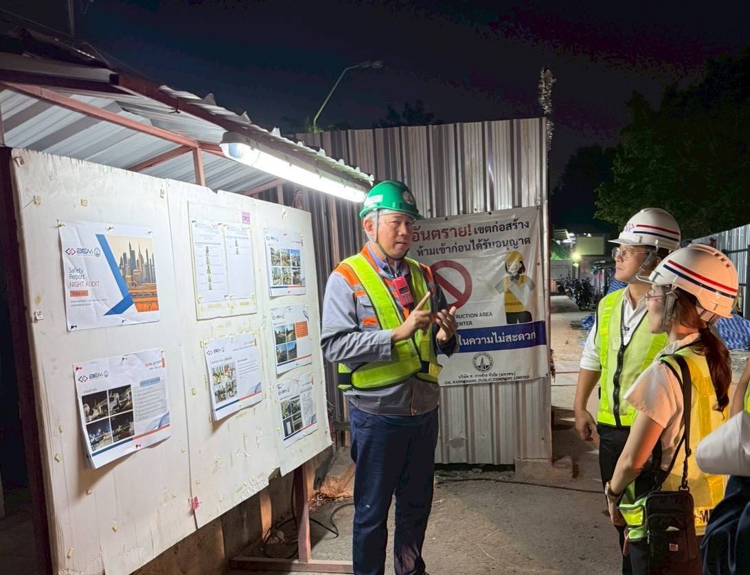 การรถไฟฟ้าขนส่งมวลชนแห่งประเทศไทย (รฟม.) โดยสำนักงานความปลอดภัย อาชีวอนามัยและสภาพแวดล้อมในการทำงาน (สปอ.) ลงพื้นที่ตรวจสอบการดำเนินงานด้านความปลอดภัยในการก่อสร้าง โครงการรถไฟฟ้าสายสีส้ม ช่วงบางขุนนนท์ – ศูนย์วัฒนธรรมแห่งประเทศไทย ช่วงเวลากลางคืน (Night Audit) โดยลงพื้นที่บริเวณสถานีบางขุนนนท์ สถานีศิริราช สถานีสนามหลวง สถานีอนุสาวรีย์ประชาธิปไตย สถานีหลานหลวง และสถานียมราช โดยได้ตรวจสอบการติดตั้งแผงผ้าใบ ไฟส่องสว่าง ไฟสัญญาณเตือน และป้ายเตือนต่างๆ ตามแนวเขตก่อสร้าง ให้มั่นคงแข็งแรง อยู่ในตำแหน่งที่ปลอดภัย สามารถเห็นได้อย่างชัดเจน การเก็บวัสดุอุปกรณ์ที่ไม่ใช้แล้วให้เรียบร้อย การจัดวางแนวแบริเออร์ (Barriers) ให้เป็นระเบียบไม่ให้ล้ำเข้าพื้นผิวจราจร ซึ่งเป็นการป้องกันอุบัติเหตุที่อาจเกิดขึ้นจากการใช้ถนนในบริเวณดังกล่าว พร้อมกำชับให้เจ้าหน้าที่ทุกคนสวมใส่อุปกรณ์คุ้มครองความปลอดภัยส่วนบุคคลให้ครบถ้วนตลอดระยะเวลาที่ปฏิบัติงาน และปฏิบัติตามมาตรฐานความปลอดภัยที่กำหนดอย่างเคร่งครัด