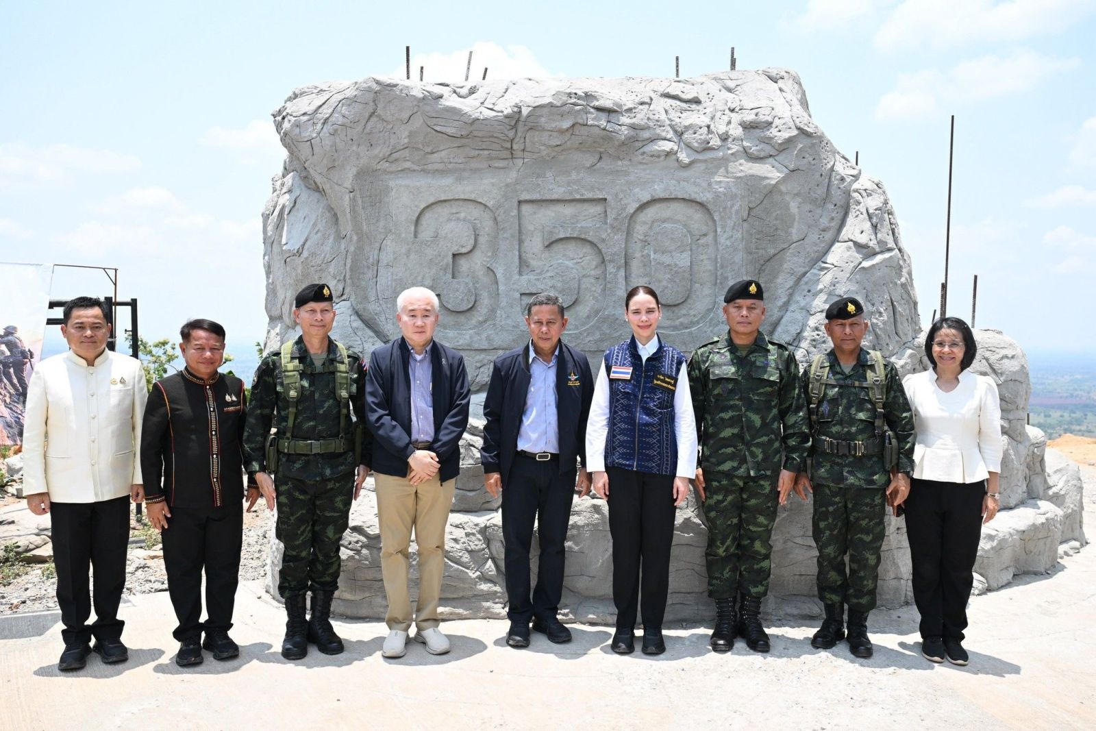 ภายหลังเสร็จสิ้นพิธี คณะได้ลงพื้นที่ตรวจเยี่ยมฐานปฏิบัติการบริเวณเนิน 350 รับฟังบรรยายสรุปสถานการณ์ด้านความมั่นคง และตรวจภูมิประเทศในพื้นที่สำคัญตามแนวชายแดน เพื่อเสริมสร้างความพร้อมในการดูแลความมั่นคงของพื้นที่ ตลอดจนติดตามการพัฒนาในพื้นที่ตามแนวทาง ‘น้ำไหล ไฟสว่าง ทางดี มีสัญญาณโทรศัพท์’ อันเป็นการยกระดับคุณภาพชีวิตของประชาชนควบคู่กับการเสริมสร้างความมั่นคงอย่างยั่งยืน ทั้งนี้ มีครอบครัวของทหารกล้าที่สละชีพเพื่อชาติร่วมในพิธีสดุดีรำลึกวีรกรรมอย่างพร้อมเพรียง