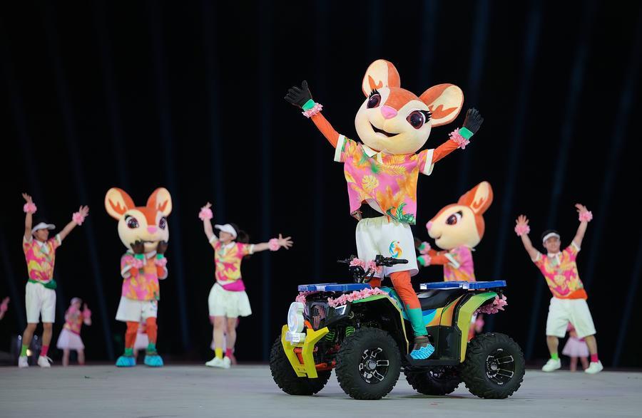 ด้านเฉียวเว่ย ผู้เขียนบทหลักของพิธีเปิด เผยว่าย่าย่า มาสคอตกวางเอลด์ของการแข่งขันฯ มีบทบาทสำคัญตลอดพิธีเปิด โดยปรากฏตัวตั้งแต่ต้นจนจบ แตกต่างจากมาสคอตแบบดั้งเดิมที่มักทำหน้าที่เป็นเพียงสัญลักษณ์ โดยย่าย่าถูกออกแบบให้เป็นตัวละครสำคัญที่เชื่อมโยงอดีต ปัจจุบัน และอนาคตของเมืองซานย่า