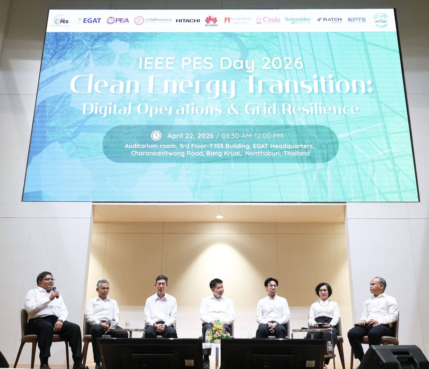 การไฟฟ้าฝ่ายผลิตแห่งประเทศไทย (กฟผ.) ร่วมกับ สมาคมไฟฟ้าและพลังงานไอทริปเปิลอี (ประเทศไทย) จัดงาน "IEEE PES Day 2026" ภายใต้แนวคิด “การเปลี่ยนผ่านพลังงานสะอาด : การดำเนินงานทางด้านดิจิทัลและความยืดหยุ่นของโครงข่ายไฟฟ้า (Clean Energy Transition: Digital Operations & Grid Resilience)” เพื่อแลกเปลี่ยนองค์ความรู้ด้านเทคโนโลยีดิจิทัลในการบริหารจัดการและเสริมเสถียรภาพโครงข่ายไฟฟ้า ผลักดันการใช้พลังงานสะอาดสู่เป้าหมาย Net Zero โดยมี นายนรินทร์ เผ่าวณิช ผู้ว่าการ กฟผ. และนายกสมาคม IEEE PES Thailand เป็นประธานเปิดงาน มีนักวิชาการ องค์กรภาครัฐ ภาคเอกชน นิสิตนักศึกษา ร่วมงานคับคั่ง ณ หอประชุม