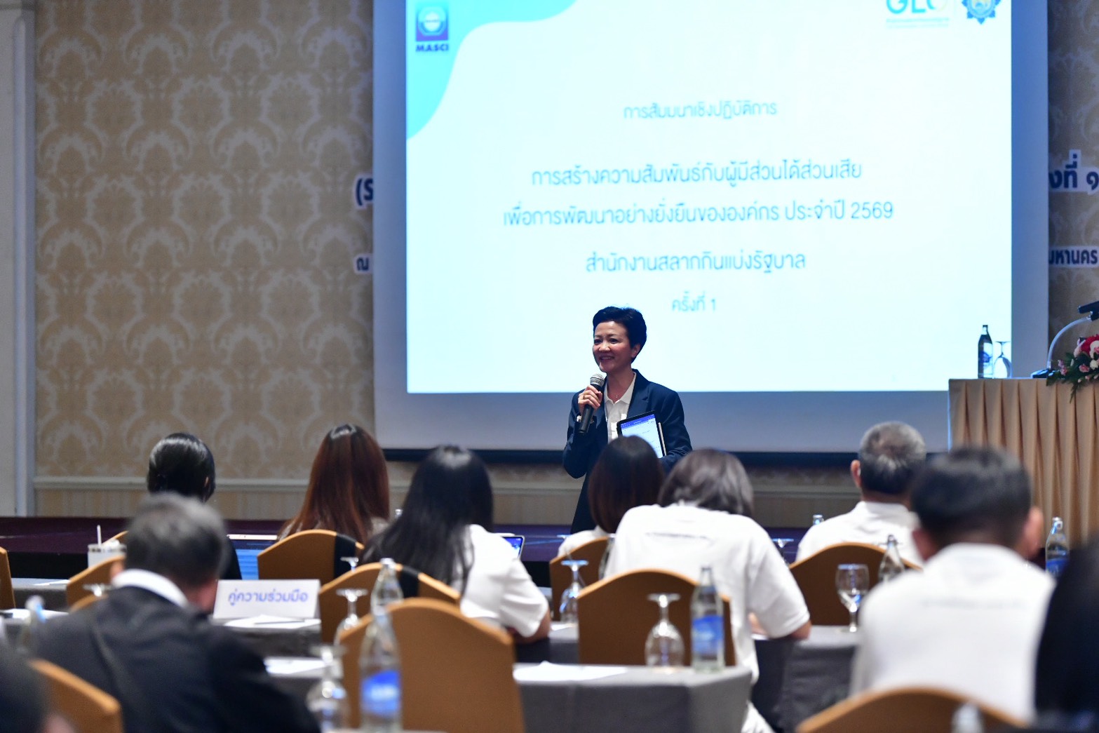 เมื่อวันที่ 24 เมษายน 2569 เวลา 09.00 น. สำนักงานสลากกินแบ่งรัฐบาล (GLO) นำโดย พันโท หนุน ศันสนาคม ผู้อำนวยการสำนักงานสลากกินแบ่งรัฐบาล เป็นประธานเปิดงานสัมมนาเชิงปฏิบัติการสร้างความสัมพันธ์กับผู้มีส่วนได้ส่วนเสียเพื่อการพัฒนาอย่างยั่งยืนขององค์กรประจำปี 2569 ซึ่งเป็นกิจกรรมตามแผนยกระดับความสัมพันธ์กับผู้มีส่วนได้ส่วนเสีย (Stakeholder Relations Enhancement) ประจำปี 2569 พร้อมด้วยผู้บริหารระดับสูงของสำนักงานฯ และผู้มีส่วนได้ส่วนเสียทุกกลุ่ม ได้แก่ ลูกค้า คู่ค้า คู่ความร่วมมือ บุคลากร สื่อมวลชน ผู้ส่งมอบ หน่วยงานกำกับดูแล สังคมชุมชน และส่วนราชการอื่น เข้าร่วมงานอย่างคับคั่ง ณ ราชพฤกษ์คลับนอร์ธปาร์ค กรุงเทพฯ