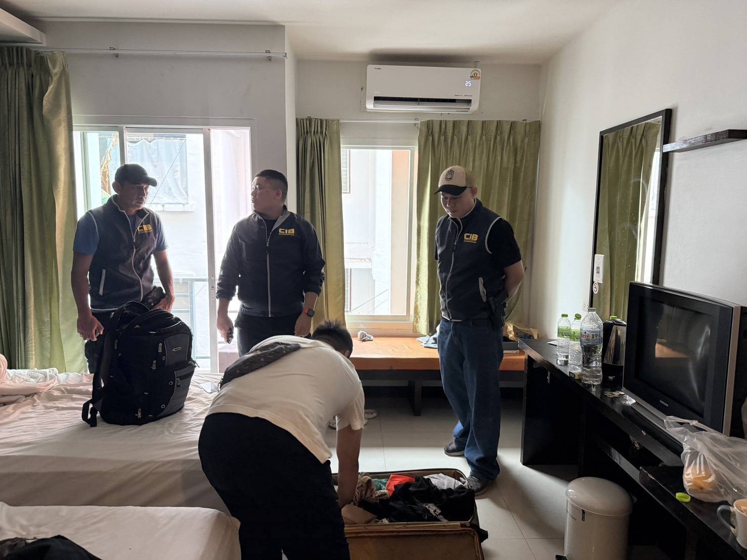 ต่อมาเจ้าหน้าที่ตำรวจสากลบิชเคก ได้ประสานความร่วมมือผ่านองค์การตำรวจอาชญากรรมระหว่างประเทศ (INTERPOL) เพื่อขอให้ออกหมายแดงติดตามจับกุมบุคคลทั้งสองรายดังกล่าวในฐานะผู้ต้องหาสำคัญซึ่งเป็นบุคคลที่สาธารณรัฐคีร์กีชสถาน ต้องการตัวและได้ออกหมายจับไว้ ภายหลังได้ประสานข้อมูลให้เจ้าหน้าที่ตำรวจกก.5 บก.ป. ได้ทำการสืบสวนติดตามอย่างใกล้ชิด จนกระทั่งทราบว่าผู้ต้องหาตามหมายแดง ได้หลบหนีมาเช่าโรงแรมอยู่ที่ จ.ภูเก็ต จากนั้น เจ้าหน้าที่ตำรวจ กก.5 บก.ป. ร่วมกับ เจ้าหน้าที่ตำรวจ ตม.จว.ภูเก็ต จึงได้เข้าควบคุมตัวบุคคลดังกล่าวไว้ได้ พร้อมดำเนินการตามขั้นตอนของกฎหมายตรวจคนเข้าเมือง โดยเพิกถอนการอนุญาตให้อยู่ในราชอาณาจักรและเตรียมผลักดันส่งกลับไปยังสาธารณรัฐคีร์กีชสถาน เบื้องต้นผู้ต้องหา ให้การปฏิเสธทุกข้อกล่าวหา