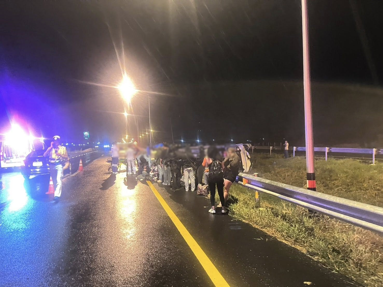 วันที่ 26 เมษายน 2569 เวลา 21.24 น. หน่วยกู้ชีพและกู้ภัยมูลนิธิศิษย์พระจี้กง จ.อุบลราชธานี รับแจ้งว่ามีอุบัติเหตุ รถทัวร์เสียหลักพลิกคว่ำลงข้างทาง ถนนทางหลวงหมายเลข 23 (ถนนแจ้งสนิท) ช่วงหลักกิโลเมตรที่ 225-226 ในพื้นที่ บ้านกอก อำเภอเขื่องใน จังหวัดอุบลราชธานี