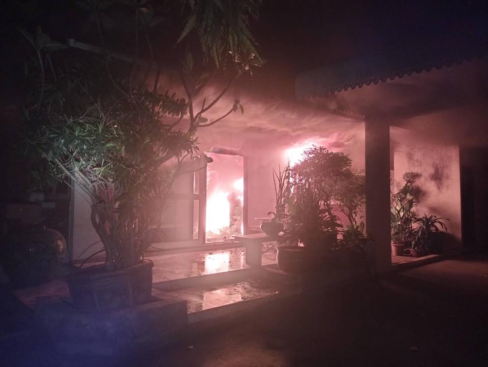 ลักษณะที่เกิดเหตุเป็นบ้านคอนกรีตชั้นเดียว (แก้ไขจาก บ้านคอนกรีต 2 ชั้น) ขณะนี้สามารถควบคุมเพลิงไว้ได้