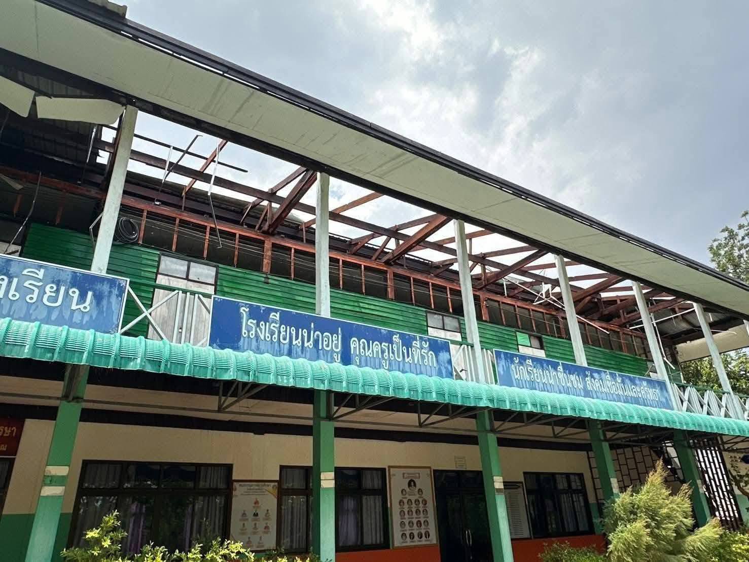 พายุฤดูร้อน พัดถล่มเมืองสุรินทร์ โรงเรียนบ้านตะตึงไถง อาคารเรียนและสิ่งปลูกสร้างหลายหลังเสียหายจากแรงลม