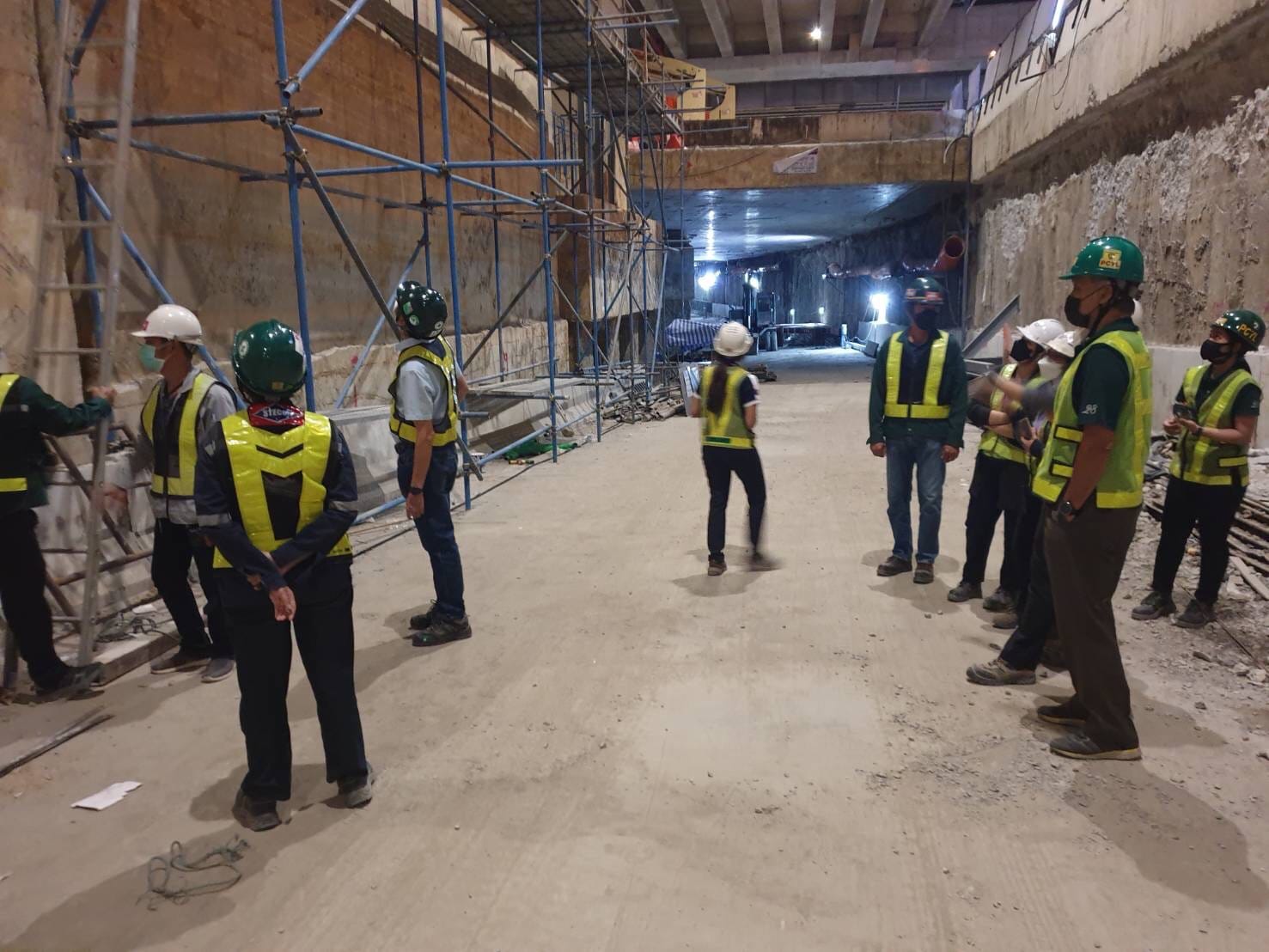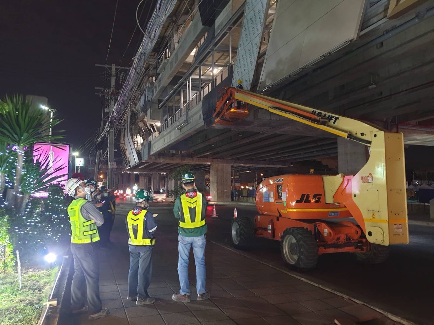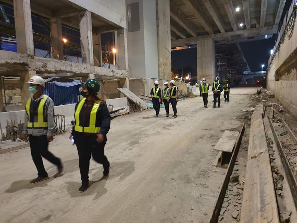 การรถไฟฟ้าขนส่งมวลชนแห่งประเทศไทย (รฟม.) โดย สำนักงานความปลอดภัย อาชีวอนามัยและสภาพแวดล้อมในการทำงาน (สปอ.) ได้ลงพื้นที่ติดตามตรวจสอบความปลอดภัยในการปฏิบัติงานก่อสร้าง โครงการรถไฟฟ้าสายสีเหลือง ช่วงลาดพร้าว – สำโรง ช่วงเวลากลางคืน (Night Audit) บริเวณตั้งแต่สถานีหัวหมาก ถึง สถานีศรีเอี่ยม บนถนนศรีนครินทร์ โดยได้ตรวจสอบไฟส่องสว่างตามแนวเขตก่อสร้าง เพื่อให้ผู้ใช้รถใช้ถนนสัญจรได้อย่างปลอดภัย และป้องกันการเกิดอุบัติเหตุในช่วงเวลากลางคืน รวมถึงตรวจสอบการปิดกั้นพื้นที่ให้มีสภาพที่แข็งแรงและติดตั้งป้ายเตือนต่างๆ ให้มีความชัดเจน โดยกำชับเจ้าหน้าที่ผู้เกี่ยวข้อง หากมีการชำรุดให้เร่งดำเนินการแก้ไขโดยเร็ว และยังได้เข้าดำเนินการตรวจสอบการก่อสร้างบริเวณอุโมงค์พัฒนาการให้มีแสงสว่างเพียงพอต่อการทำงาน และตรวจสอบระบบระบายอากาศภายในอุโมงค์ให้เป็นไปตามมาตรฐานความปลอดภัย พร้อมเน้นย้ำให้เจ้าหน้าที่ทุกคนและผู้เกี่ยวข้องทุกหน่วยงานปฏิบัติตามมาตรฐานความปลอดภัยตามที่กฎหมายกำหนดอย่างเคร่งครัด เพื่อให้สอดคล้องตาม “ปฏิญญาว่าด้วยความปลอดภัยในการก่อสร้างโครงการระบบรถไฟฟ้าขนส่งมวลชน Zero Fatal Accident” ป้องกันไม่ให้เกิดเหตุอันไม่พึงประสงค์ ทั้งต่อบุคลากรของโครงการฯ และประชาชนผู้สัญจรบนถนนสาธารณะ