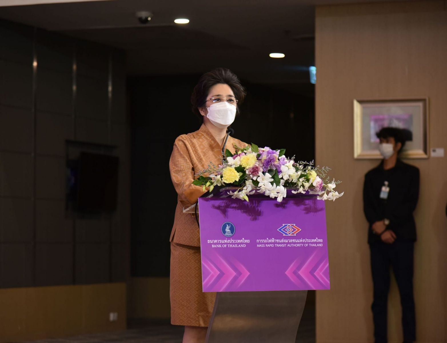 นางรุ่ง มัลลิกะมาส รองผู้ว่าการ ด้านบริหาร ธปท. กล่าวว่า ธปท. เล็งเห็นความสำคัญของโครงการรถไฟฟ้าสายสีม่วง ช่วงเตาปูน–ราษฎร์บูรณะ (วงแหวนกาญจนาภิเษก) ที่นับเป็นโครงการสำคัญในการขยายเครือข่ายระบบขนส่งมวลชน ให้เป็นโครงสร้างพื้นฐานให้กับประชาชนและประเทศในอนาคต โดยจะทำให้ประชาชนมีทางเลือกในการเดินทางที่สะดวกและรวดเร็วเพิ่มขึ้น รวมถึงช่วยสร้างมูลค่าเพิ่มทางเศรษฐกิจให้แก่ผู้ประกอบการตลอดแนวของโครงการรถไฟฟ้าสายสีม่วงฯ และ ธปท. ยินดีที่จะร่วมมือกับ รฟม. ในการดำเนินงานก่อสร้างในส่วนที่เกี่ยวข้องให้เป็นไปตามแผนที่วางไว้