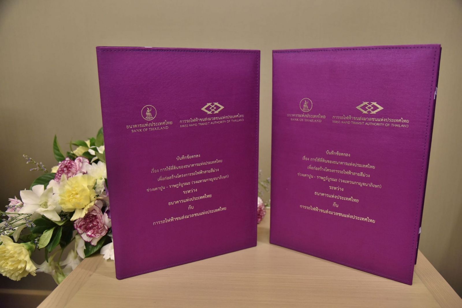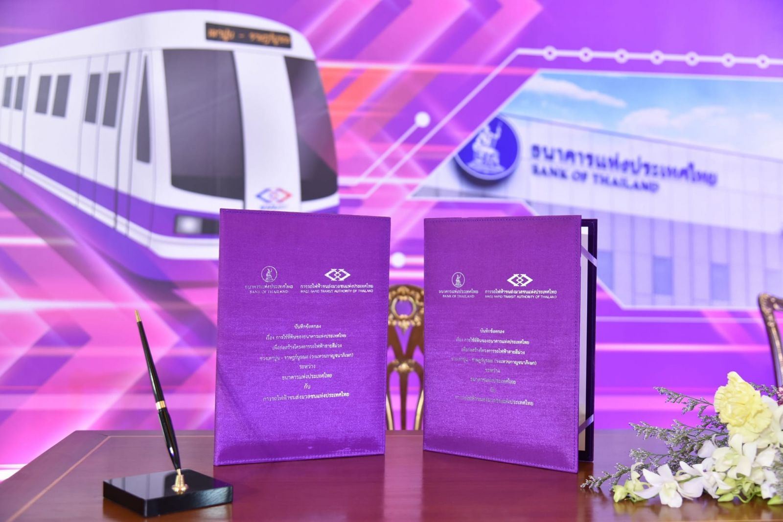 นายภคพงศ์ ศิริกันทรมาศ ผู้ว่าการ รฟม. กล่าวว่า รฟม. ได้ร่วมลงนามบันทึกข้อตกลงกับ ธปท. ว่าด้วยการใช้ที่ดินของ ธปท. เพื่อก่อสร้างโครงการรถไฟฟ้าสายสีม่วง ช่วงเตาปูน – ราษฎร์บูรณะ (วงแหวนกาญจนาภิเษก) โดยเป็นการใช้พื้นที่ของ ธปท. บริเวณริมรั้วด้านสะพานพระรามแปด และด้านถนนสามเสน เพื่อใช้สำหรับการก่อสร้างอุโมงค์ทางเดินไปยังสถานีรถไฟฟ้า และอาคารทางขึ้น – ลง ที่ 4 ของสถานีบางขุนพรหม รวมถึงใช้เป็นอุโมงค์ทางวิ่งรถไฟฟ้าใต้ดินของโครงการรถไฟฟ้าสายสีม่วง ช่วงเตาปูน - ราษฎร์บูรณะ (วงแหวนกาญจนาภิเษก)