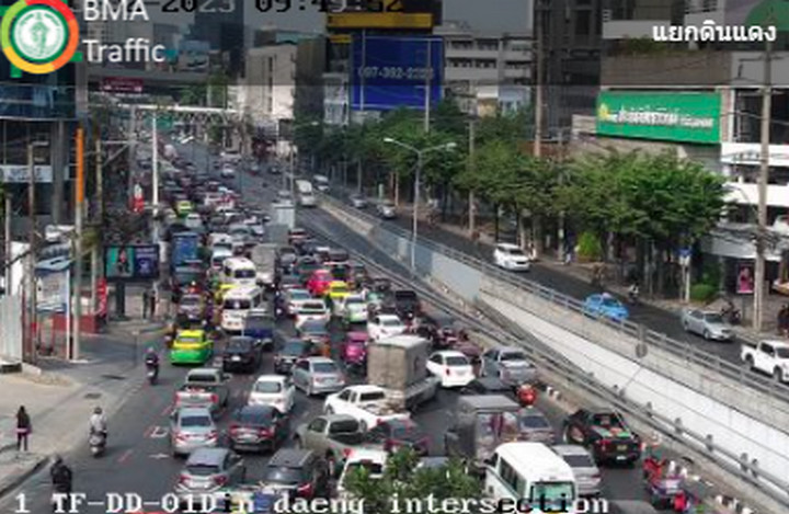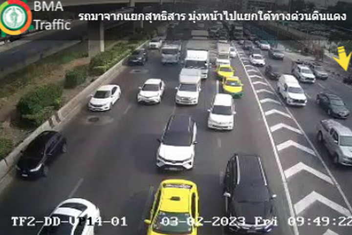 09.50 น. ถนนวิภาวดี-รังสิต ขาเข้า มุ่งหน้าใต้ด่วนดินแดง ท้ายแถวสะสมหน้าศูนย์ฝึก รด.