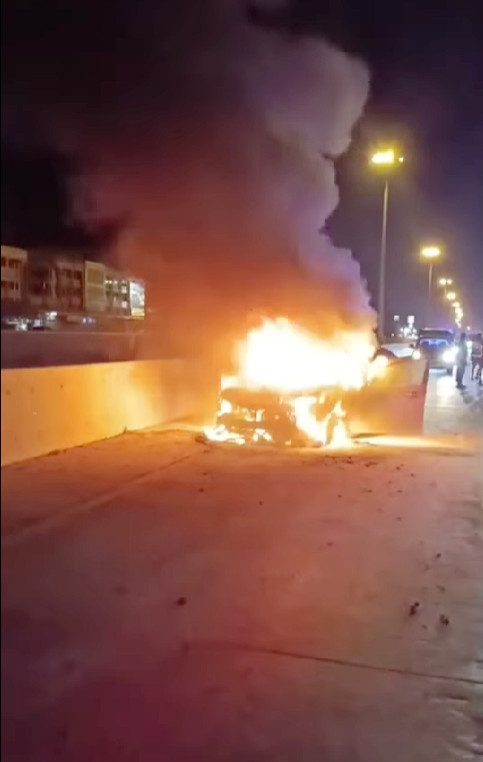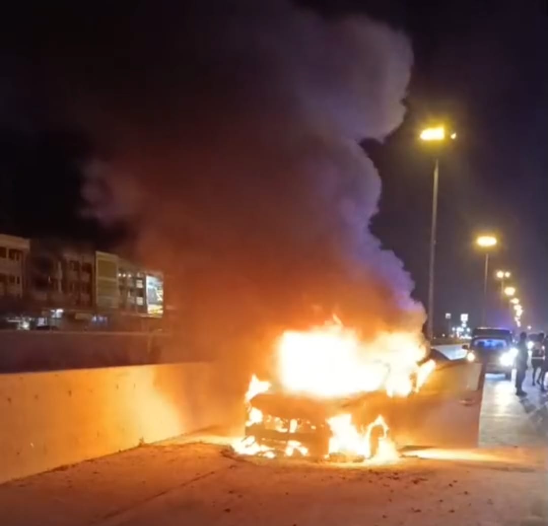 ไฟไหม้รถเก๋ง กลางถนนทางหลวงหมายเลข 304 เสียหายวอดทั้งคัน จ.ฉะเชิงเทรา