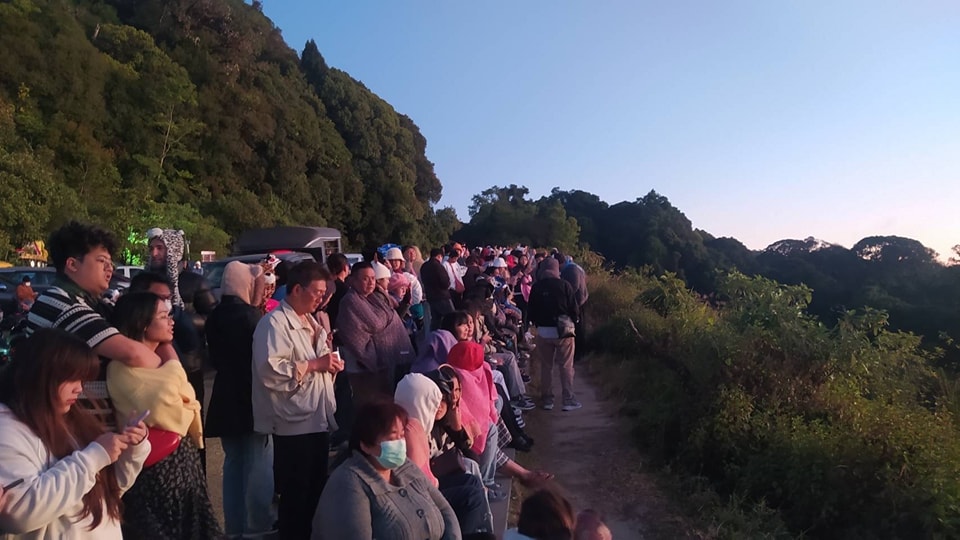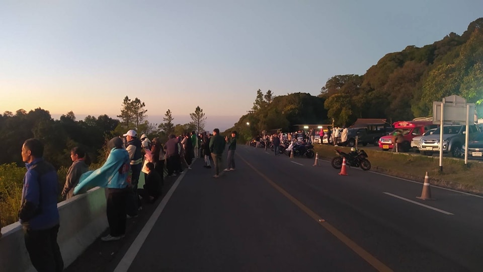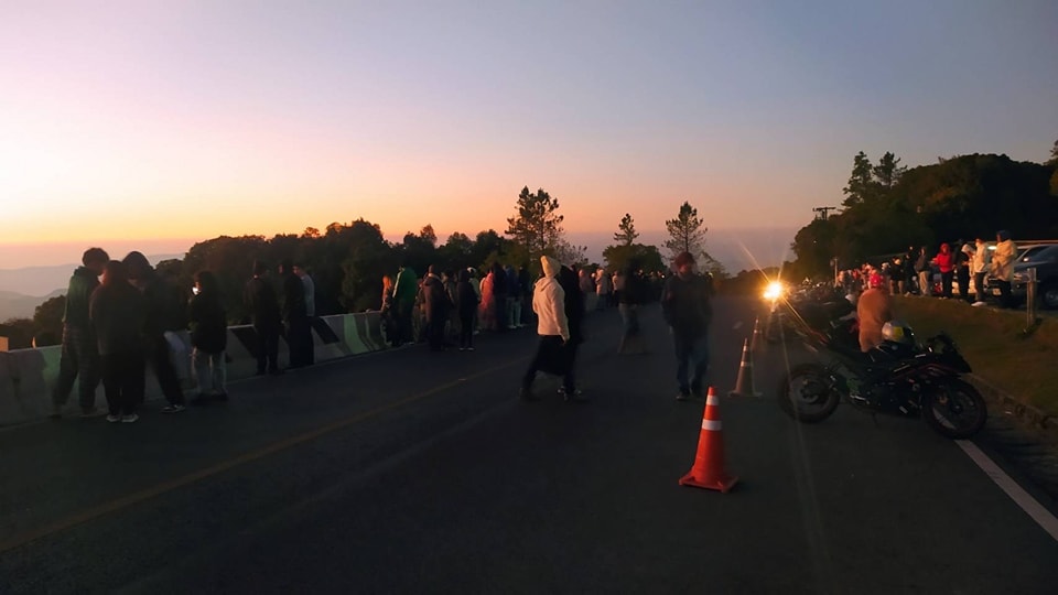 ส่วนบรรยากาศการท่องเที่ยวบนยอดดอยอินทนนท์ยังคงคึกคักไปด้วยนักท่องเที่ยวจำนวนมาก ที่ขึ้นมาเที่ยวรอชมแสงแรกของเช้าวันใหม่ พร้อมทั้งตื่นตาตื่นใจกับเหมยขาบ หรือ แม่คะนิ้ง ขาวโพลนบนยอดดอยอินทนนท์ท่ามกลางอากาศที่หนาวจัด ส่วนสภาพการจราจรคล่องตัว
