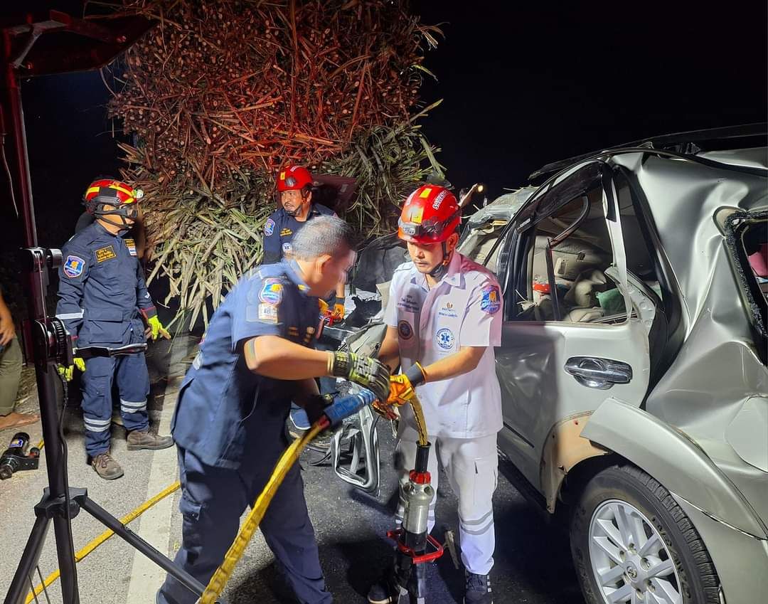 รถยนต์อเนกประสงค์ ชนท้ายรถบรรทุกอ้อย ภรรยานั่งเบาะข้างดับ สามีคนขับบาดเจ็บ จ.ขอนแก่น