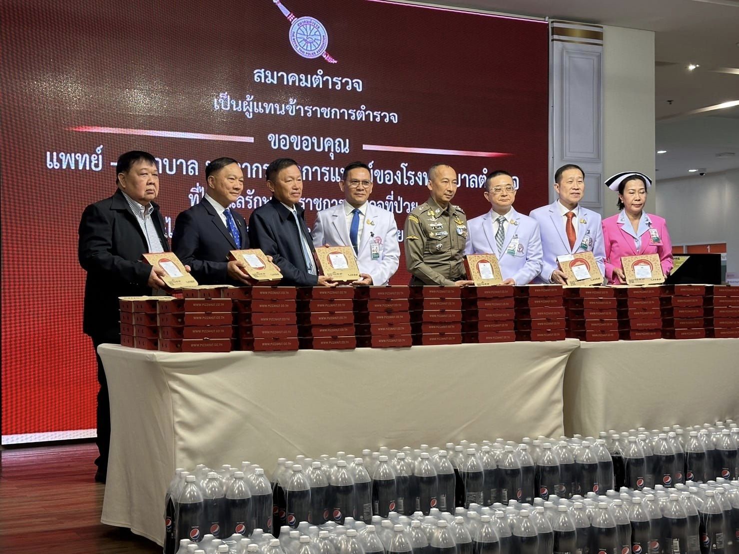 วันพฤหัสบดีที่ 4 มกราคม 2567 ณ ลานเวที ชั้น 2 อาคารมหาภูมิพลราชานุสรณ์ 88 พรรษา โรงพยาบาลตำรวจ พล.ต.อ.วินัย ทองสอง นายกสมาคมตำรวจ พร้อมคณะกรรมการสมาคมฯ นำพิซซ่า 1,600 ถาด พร้อมน้ำอัดลม 800 ขวด มามอบให้โรงพยาบาลตำรวจ ส่งต่อแพทย์ พยาบาล และบุคลากรทางการแพทย์ เพื่อขอบคุณที่ดูแลข้าราชการตำรวจที่เจ็บป่วย หรือบาดเจ็บจากการปฏิบัติหน้าที่ รวมถึงผู้ป่วย และผู้มาใช้บริการ เป็นอย่างดี โดยจัดเลี้ยงรวมทั้งหมด 3,171 คน เป็นเงิน 291,250 บาท
