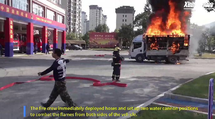 เต๋อซิง, 4 ม.ค. (ซินหัว) — ชวนชมคลิปเหตุการณ์สุดลุ้นระทึกในเมืองเต๋อซิง มณฑลเจียงซีทางตะวันออกของจีน เมื่อวันที่ 25 ธ.ค. 2023 เมื่อรถบรรทุกขนาดเล็กคันหนึ่งซึ่งบรรทุกน้ำมันต้นสนเกิดไฟลุกท่วมหลังรถ คนขับจึงรับมืออย่างฉับไวด้วยการขับพารถบรรทุกคันดังกล่าวไปยังสถานีดับเพลิงที่อยู่ใกล้เคียงเพื่อขอความช่วยเหลือ