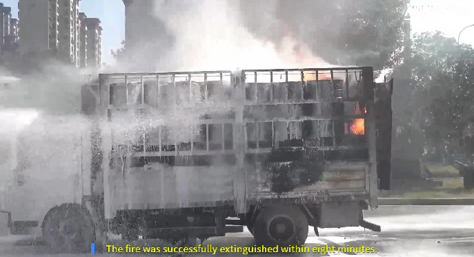 ขณะรถบรรทุกขับเข้าใกล้สถานีฯ เจ้าหน้าที่ดับเพลิงได้มองเห็นเหตุการณ์อยู่แล้วจึงยกแผงกั้นจอดรถขึ้นและแนะคนขับรถไปยังพื้นที่ปลอดภัย จากนั้นใช้หัวฉีดน้ำแรงดันสูงฉีดน้ำจากทั้งสองด้านของตัวรถ และควบคุมไฟสำเร็จภายในเวลาแค่ 8 นาที