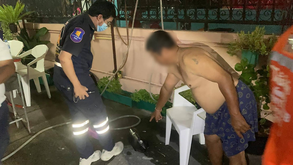 ที่เกิดเหตุ พบเจ้าหน้าที่กำลังช่วยกันปฐมพยาบาลเบื้องต้นผู้บาดเจ็บ 3 รายเป็นผู้หญิงไทย 1ราย เป็นผู้ชายชาวคูเวต 1 ราย และภรรยาชาวคูเวตอีก 1 รายถูกไฟลวกตามร่างกาย ได้รับบาดเจ็บ ก่อนเคลื่อนย้ายส่งโรงพยาบาลอย่างเร่งด่วน ตรวจสอบที่เกิดเหตุพบ เตาย่าง และถังแกลอนทินเนอร์ ล้มอยู่กับพื้น มีร่องรอยไหม้ดำเป็นตอตะโก