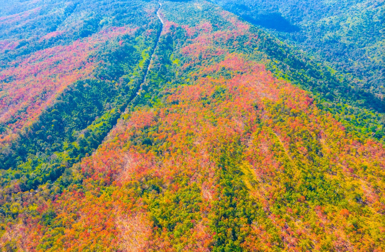 6 มกราคม 2567 ชมความงดงามของป่าเปลี่ยนสี ทางเข้าอยู่บริเวณกิโลเมตรที่ 419 ของทางหลวงแผ่นดินหมายเลข 12 สายหล่มสัก-ชุมแพ ประมาณเดือนธันวาคม-มกราคมของทุกปี ผืนป่าบริเวณนี้ซึ่งเป็นป่าผสมผลัดใบ ก่อนที่พันธุ์ไม้จะผลัดใบจะมีปรากฏการณ์ธรรมชาติที่ใบไม้ในป่าเต็งรังและป่าเบญจพรรณเปลี่ยนสีจากสีเขียวเป็นสีเหลืองและแดงทั่วทั้งป่าในช่วงหน้าแล้ง เกิดเป็นสีสันของธรรมชาติที่แปลกตาน่าชมมาก โดยเฉพาะที่ภูหลังกงเกวียน จุดที่มองป่าเปลี่ยนสีได้ชัดเจนที่สุดคือ บริเวณกิโลเมตรที่ 419 นอกจากนี้ยังสามารถชมความงามของป่าเปลี่ยนสีได้ที่ยอดภูกุ่มข้าว และบนเส้นทางไปน้ำตกเหวทรายอีกด้วย