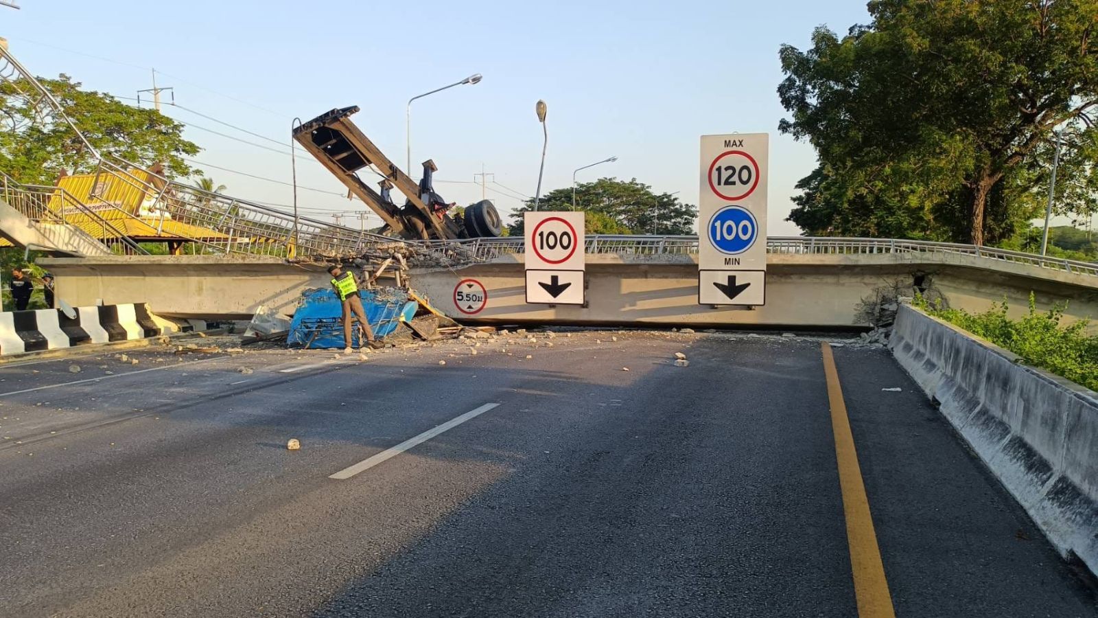 ระทึกแต่เช้าอีกแล้ว! ถนนสายเอเชีย ขาออก ฝั่งมุ่งหน้าไปนครสวรรค์ ช่วง กม.55 พื้นที่ อ.ไชโย จ.อ่างทอง อุบัติเหตุรถบรรทุกความสูงเกินไปเกี่ยวสะพานลอยคนข้าม พังถล่มลงมากีดขวางทุกช่องทาง รถไม่สามารถผ่านได้ ขณะนี้เจ้าหน้าที่กำลังดำเนินการ รถติดหนักมาก #รายงานจราจร #รถติด #อุบัติเหตุ #FM91