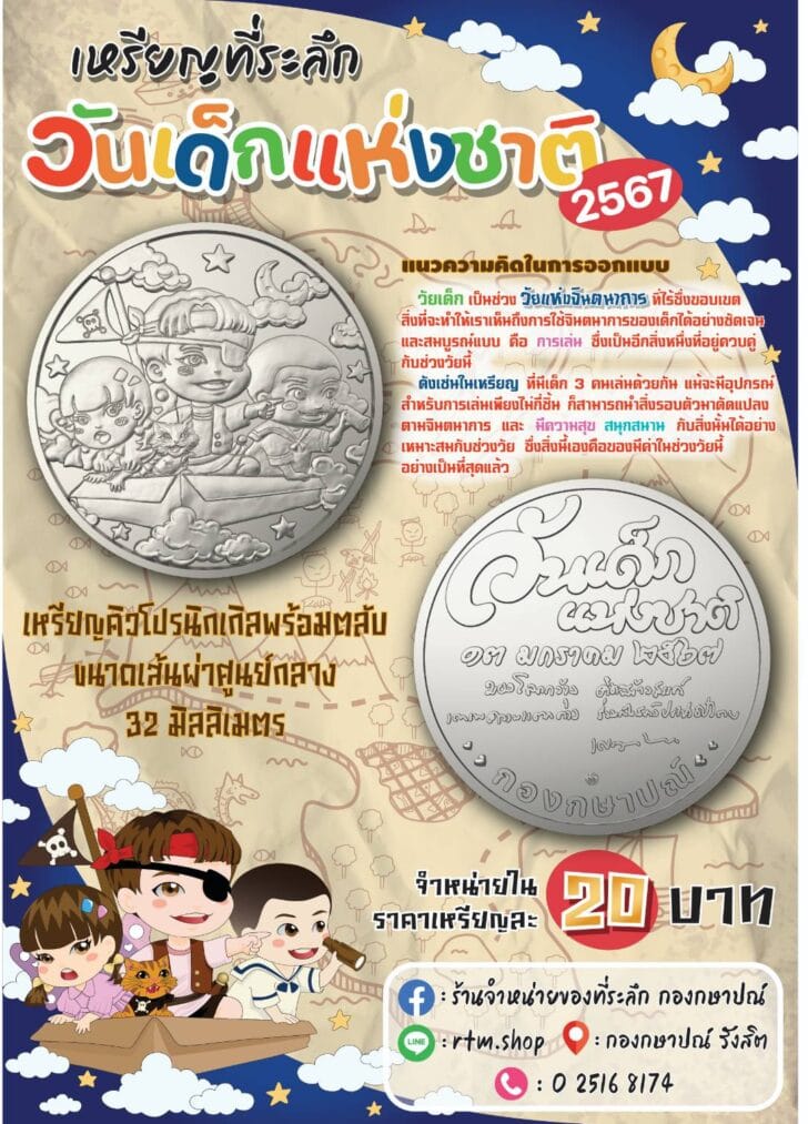 10 ม.ค.2567 นายจำเริญ โพธิยอด อธิบดีกรมธนารักษ์ เปิดเผยว่า กรมธนารักษ์จัดทำเหรียญที่ระลึกวันเด็กแห่งชาติ 2567 เพื่อเป็นที่ระลึก และให้ความสำคัญกับเด็กๆ และเยาวชน