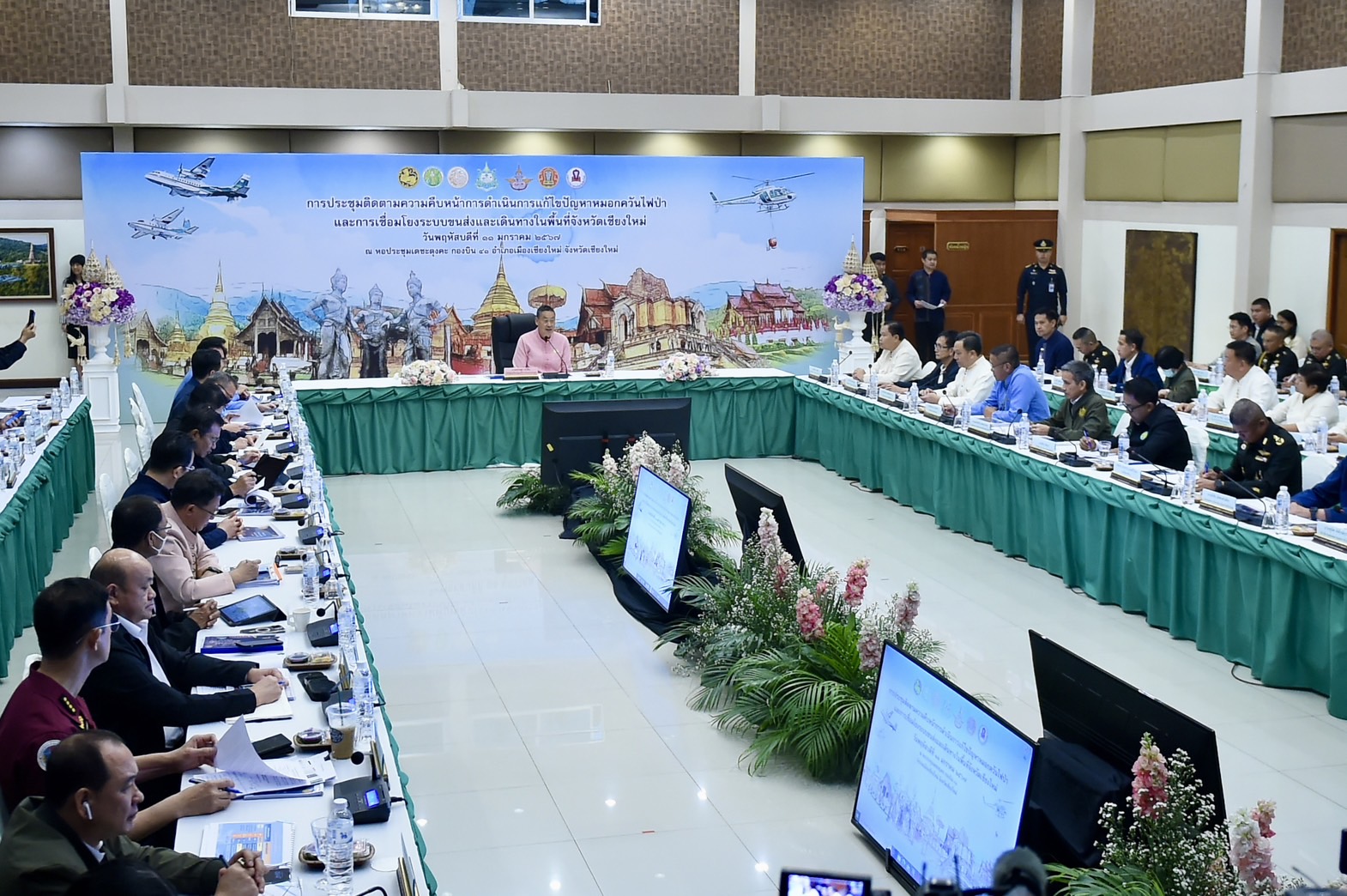 วันนี้ (11 ม.ค.67) นายเศรษฐา ทวีสิน นายกรัฐมนตรีและรัฐมนตรีว่าการกระทรวงการคลัง เป็นประธานการประชุมติดตามความคืบหน้าการดําเนินการแก้ไขปัญหาหมอกควันไฟป่า และการเชื่อมโยงระบบขนส่งและเดินทางในพื้นที่จังหวัดเชียงใหม่ โดยมีพลตำรวจเอก พัชรวาท วงษ์สุวรรณ รองนายกรัฐมนตรีและรัฐมนตรีว่าการกระทรวงทรัพยากรธรรมชาติและสิ่งแวดล้อม นายสุริยะ จึงรุ่งเรืองกิจ รัฐมนตรีว่าการกระทรวงคมนาคม ร้อยเอก ธรรมนัส พรหมเผ่า รัฐมนตรีว่าการกระทรวงเกษตรและสหกรณ์ นางสาวสุดาวรรณ หวังศุภกิจโกศล รัฐมนตรีว่าการกระทรวงการท่องเที่ยวและกีฬา นายสุรพงษ์ ปิยะโชติ รัฐมนตรีช่วยว่าการกระทรวงคมนาคม นายเกรียง กัลป์ตินันท์ รัฐมนตรีช่วยว่าการกระทรวงมหาดไทย นายนิรัตน์ พงษ์สิทธิถาวร ผู้ว่าราชการจังหวัดเชียงใหม่ เข้าร่วมด้วย นายชัย วัชรงค์ โฆษกประจำสำนักนายกรัฐมนตรี เปิดเผยสาระสำคัญสรุป ดังนี้