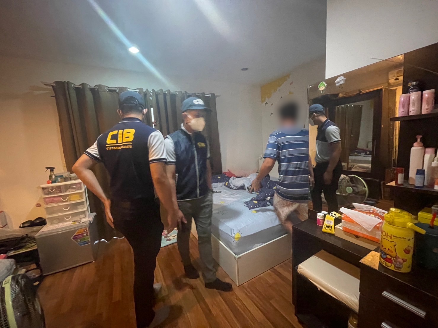 กองบังคับการปราบปรามการกระทำความผิดเกี่ยวกับอาชญากรรมทางเศรษฐกิจ โดย พล.ต.ต.พุฒิเดช บุญกระพือ ผบก.ปอศ. พร้อม เจ้าหน้าที่ชุดตรวจค้น นำโดย พ.ต.ต.ฉัตรดนัย ทองคลอด สว.กก.5 บก.ปอศ. ตำรวจชุดปฏิบัติการที่ 3 กก.5 บก.ปอศ.