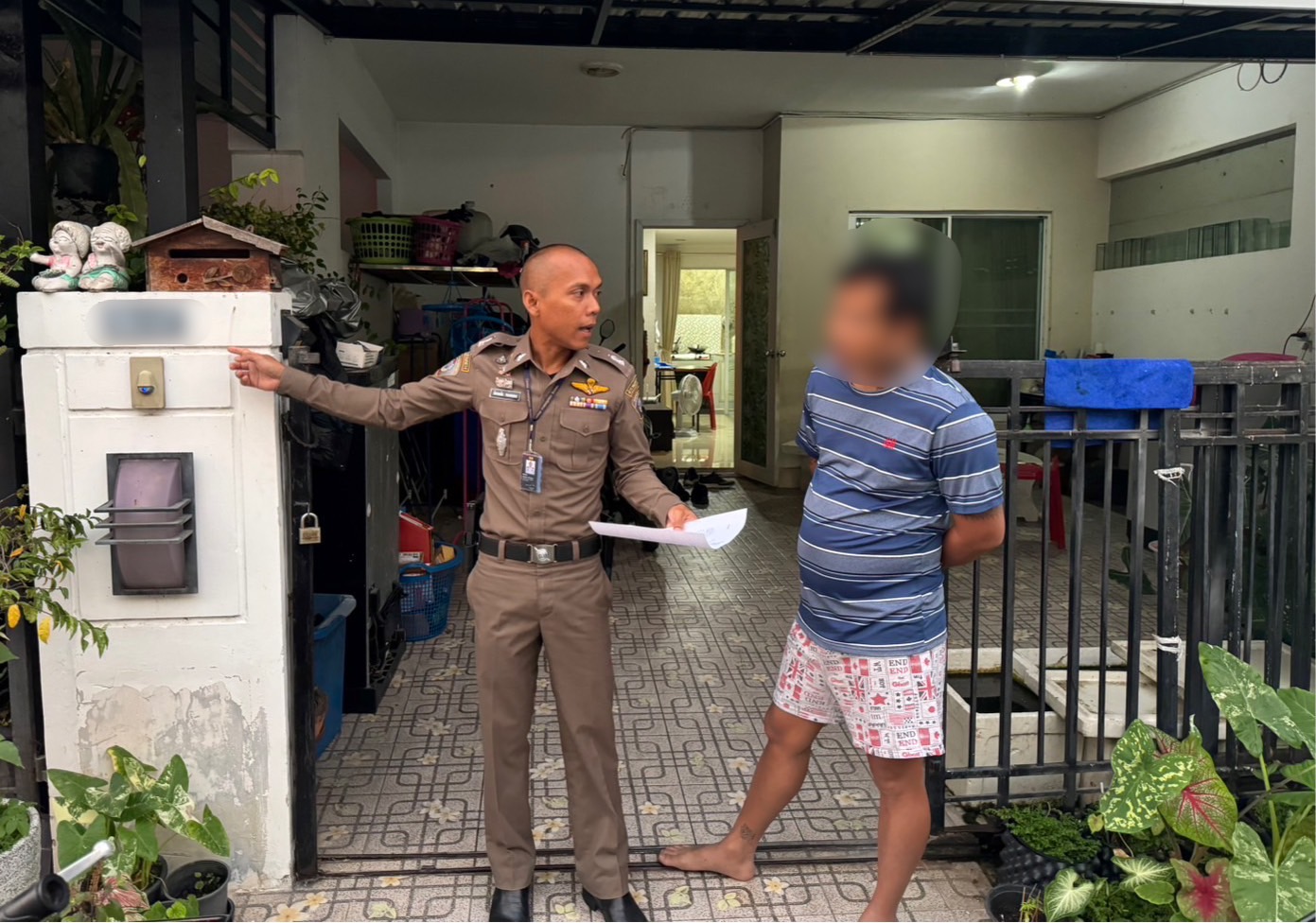 สืบเนื่องจากเจ้าหน้าที่ตำรวจได้รับแจ้งเบาะแสเกี่ยวกับเงินกู้นอกระบบในพื้นที่ จ.นครปฐม เจ้าหน้าที่ตำรวจ กก.5 บก.ปอศ. ได้สืบสวนจนทราบว่า ผู้ต้องหาได้พักอาศัยอยู่ที่บ้านเช่าดังกล่าว จึงได้ขออนุมัติหมายค้นต่อศาลจังหวัดนครปฐม ต่อมาเจ้าหน้าที่ตำรวจได้นำหมายค้นเข้าทำการตรวจค้นบ้านเช่าหลังดังกล่าว พบตัวผู้ต้องหา จำนวน 2 ราย และเอกสารหลักฐานการปล่อยเงินกู้นอกระบบเป็นจำนวนมาก เจ้าหน้าที่ตำรวจจึงได้ทำการตรวจยึดไว้เป็นของกลาง จากนั้นนำตัวผู้ต้องหาและของกลางส่งพนักงานสอบสวน กก.5 บก.ปอศ. เพื่อดำเนินคดีตามกฎหมายต่อไป
