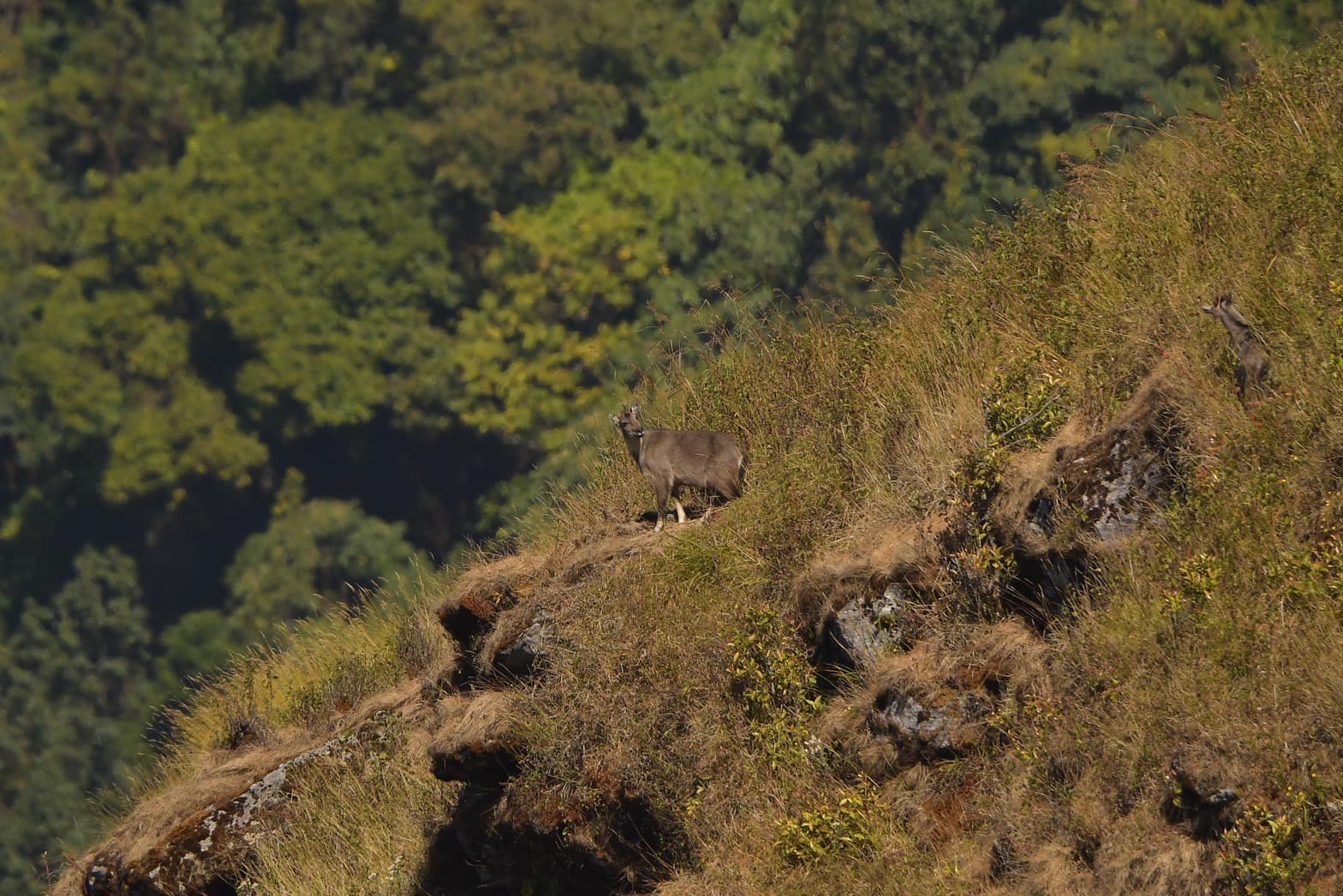 12 มกราคม 2567 อุทยานแห่งชาติดอยอินทนนท์ จ.เชียงใหม่ เผยภาพ “ม้าเทวดา” หรือ กวางผา ออกมาอาบแดดและเล็มหญ้ากันอย่างสบายใจบริเวณกิ่วแม่ปานท่ามกลางอากาศเย็น ถือเป็นภาพที่หาชมยากเนื่องจากกวางผาเป็นสัตว์ป่าหายากที่ระมัดระวังตัวค่อนข้างมาก สร้างความฮือฮาให้กับนักท่องเที่ยวที่มีโอกาสได้ไปเห็นโดยบังเอิญ