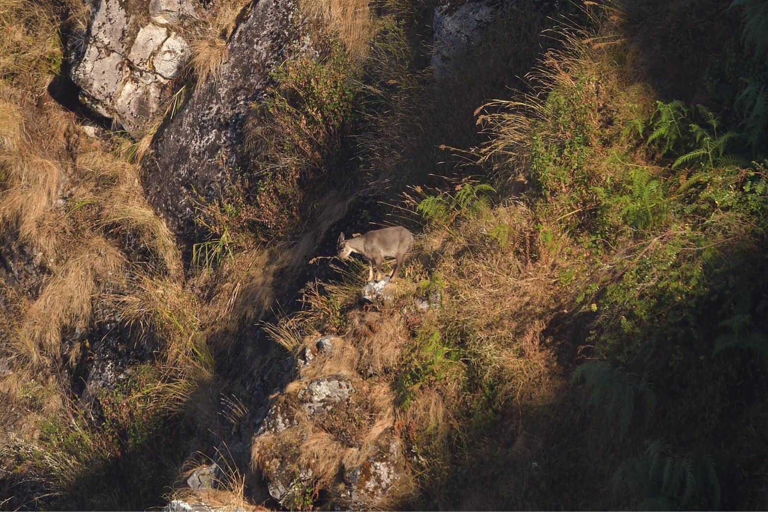 “กวางผา” (Buemese Goral) มองเผินๆ อาจมีรูปร่างคล้ายเลียงผา แต่กวางผามีขนาดตัวที่เล็กกว่าเกือบครึ่ง มีคอเล็กกว่า หางยาวกว่า และขาที่สั้นกว่า มีขนสีน้ำตาลอมเทา มีแถบสีน้ำตาลเข้มพาดกลางหลัง ขนที่ปลายขาทั้ง 4 มีสีขาว คล้ายกับกำลังใส่ถุงเท้าอยู่