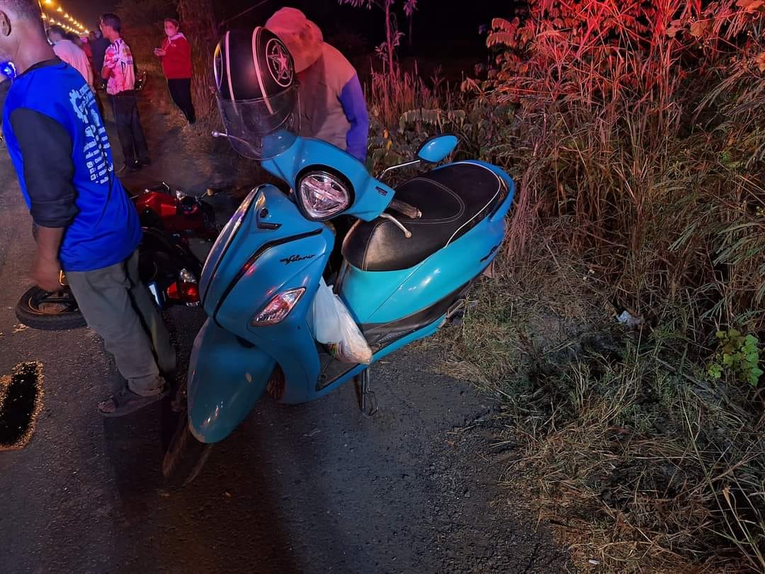 ที่เกิดเหตุ พบรถจักรยานยนต์ ฮอนด้า เวฟ สีน้ำเงิน ป้ายทะเบียน สุรินทร์, รถจักรยานยนต์ ฮอนด้า เวฟ สีดำ-แดง ป้ายทะเบียน สุรินทร์, รถจักรยานยนต์ ยามาฮ่า ฟีราโน่ สีฟ้า ป้ายทะเบียน สุรินทร์ และรถสามล้อผู้พิการ สีแดง ป้ายทะเบียน ชัยภูมิความรุนแรงทำให้มีผู้บาดเจ็บรวม 3 ราย