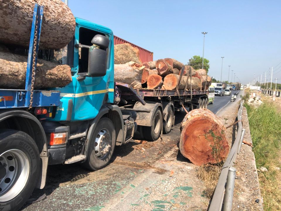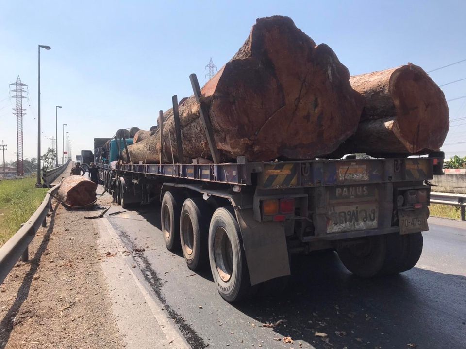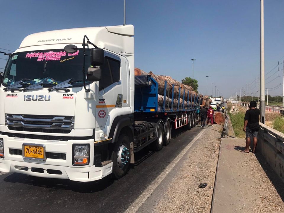 ถนนวงแหวนตะวันตก ขาเข้า มุ่งหน้าบางบัวทอง เชิงทางขึ้นสะพานข้ามแม่น้ำเจ้าพระยา รถพ่วง 18 ล้อชนกัน 2 คัน ส่งผลให้ท่อนซุงที่บรรทุกมา หล่นบนพื้นถนน ในช่องทางซ้าย รถติดหนักมาก ท้ายแถวสะสมทางลงทางพิเศษอุดรรัถยาแล้ว #รายงานจราจร #รถติด #อุบัติเหตุ #FM91