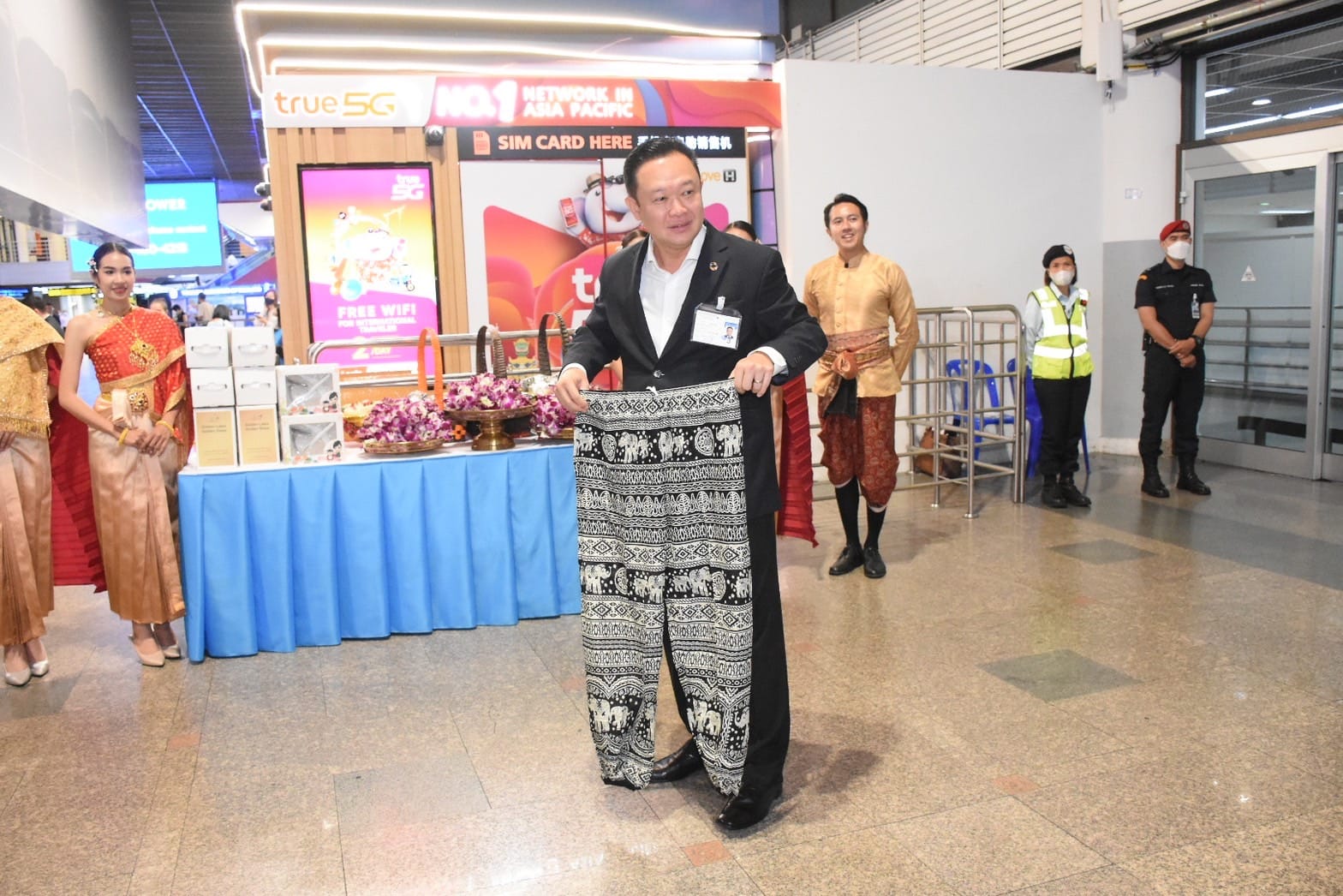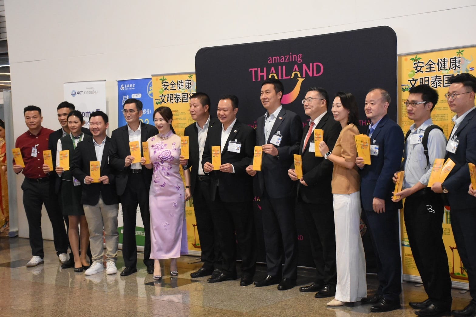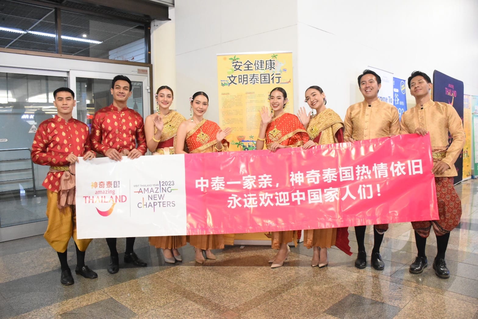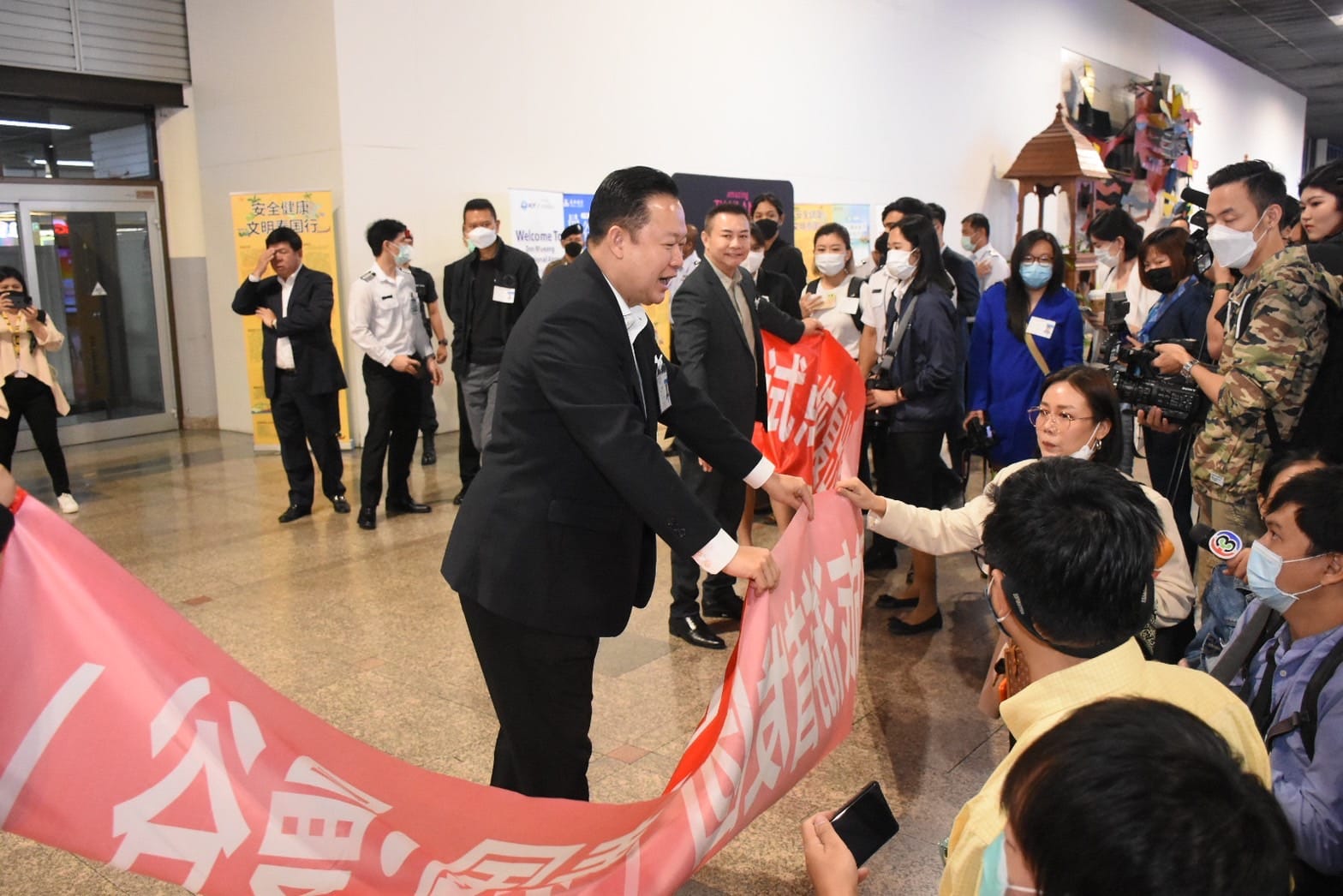 นายยุทธศักดิ์ สุภสร ผู้ว่าการ ททท. กล่าวว่า “ ททท. ร่วมกับสถานเอกอัครราชทูตสาธารณรัฐประชาชนจีนประจำประเทศไทย และสายการบินสปริงแอร์ไลน์ จัดพิธีต้อนรับนักท่องเที่ยวชาวจีนแบบกรุ๊ปทัวร์คณะแรก ณ ท่าอากาศยานดอนเมือง ภายหลังกระทรวงวัฒนธรรมและการท่องเที่ยวของจีนอนุญาตให้บริษัทนำเที่ยวจัดกรุ๊ปทัวร์นำนักท่องเที่ยวชาวจีนเดินทางออกเที่ยวต่างประเทศได้ โดยเริ่มต้นนำร่องใน 20 ประเทศ ซึ่งประเทศไทยเป็น 1 ใน 20 ประเทศดังกล่าว กลุ่มนักท่องเที่ยวชาวจีนบินตรงจากนครกว่างโจว สาธารณรัฐประชาชนจีนสู่สนามบินดอนเมือง กรุงเทพฯ ด้วยสายการบินสปริงแอร์ไลน์ เที่ยวบิน 9C7419 ความจุผู้โดยสาร 180 ที่นั่ง โดยเที่ยวบินนี้ ประกอบด้วย นักท่องเที่ยวชาวจีนแบบกรุ๊ปทัวร์ 2 คณะ จำนวน 40 คน และนักท่องเที่ยวชาวจีนผู้ที่เดินทางด้วยตัวเอง (FIT) อีกจำนวน 90 คน ในโอกาสนี้ Mr. Yang Xin อุปทูตรักษาราชการแทนเอกอัครราชทูตสาธารณรัฐประชาชนจีนประจำประเทศไทย และผู้บริหาร ททท. ร่วมมอบของที่ระลึกและพวงมาลัยดอกไม้ เพื่อสร้างความประทับใจแก่นักท่องเที่ยว ตั้งแต่เดินทางถึงด้วยมิตรไมตรีอย่างอบอุ่น และนอกจากเที่ยวบิน
