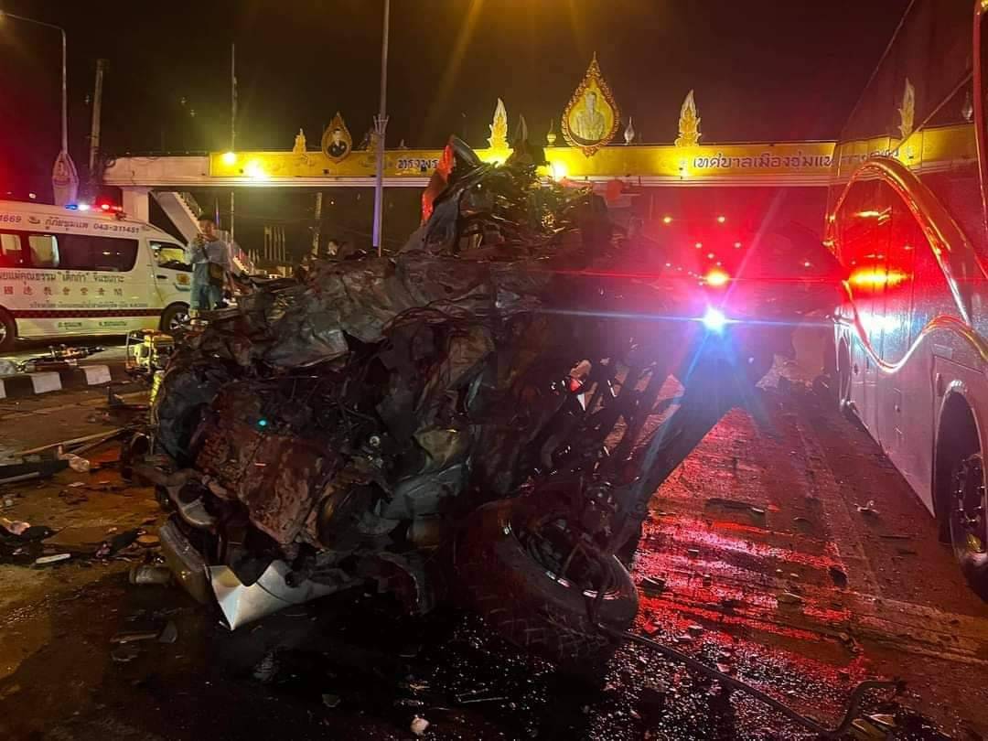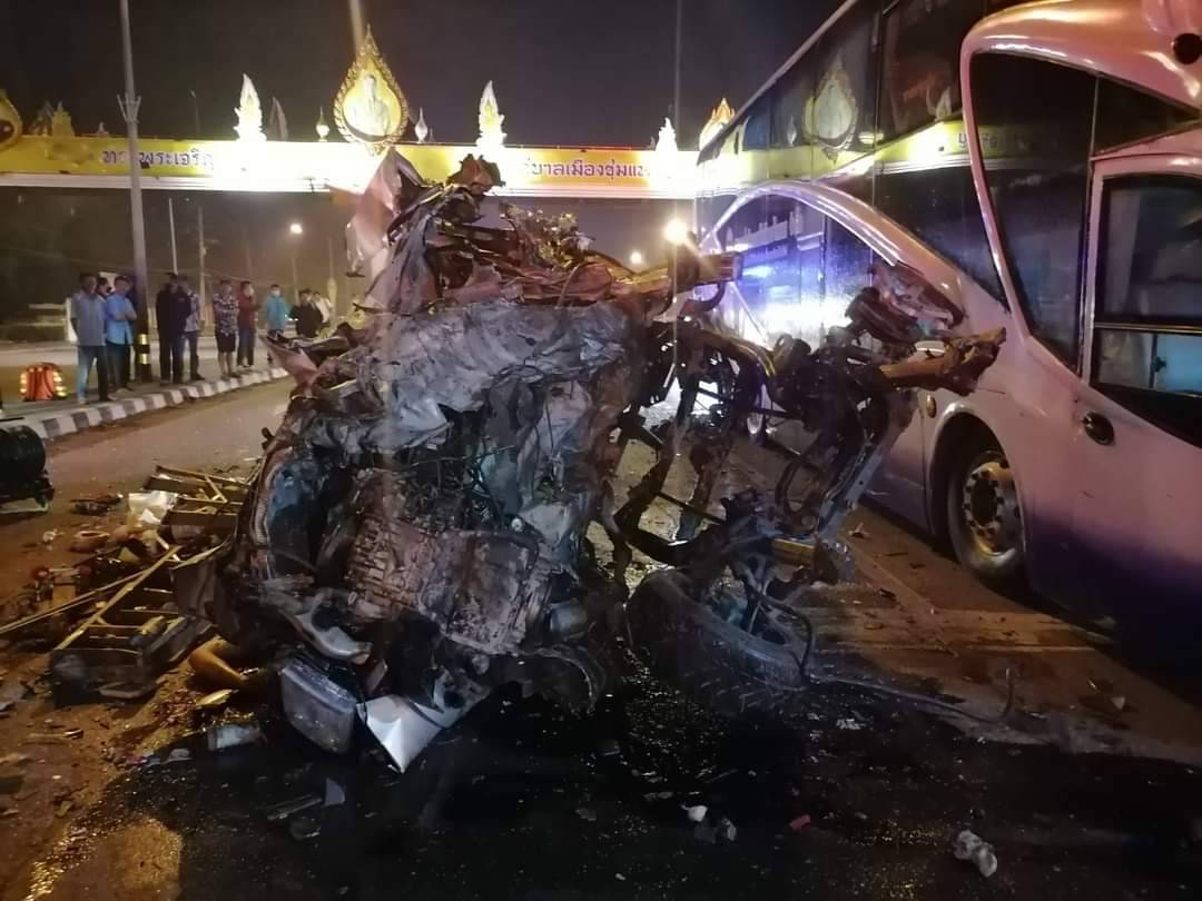 เวลา 02:50 น. วันที่ 6 ก.พ.66 เกิดอุบัติเหตุ รถกระบะ ชนกับรถทัวร์ มีผู้เสียชีวิต บริเวณสี่แยกไฟแดง หน้า รพ.ชุมแพ ถนนมะลิวัลย์ อ.ชุมแพ จ.ขอนแก่น ทิศทางมุ่งหน้าไปขอนแก่น ทางหน่วยกู้ภัยชุมแพ จีแชเกาะ จัดกำลังเจ้าหน้าที่ และอาสา พร้อมอุปกรณ์ตัดถ่างไปที่เกิดเหตุ เมื่อถึงที่เกิดเหตุ พบรถกระบะ อีซูซุ ในสภาพยับเยิน และรถทัวร์ สภาพส่วนท้ายเสียหาย และยังมีรถกระบะโตโยต้าอีกคัน เสียหายเล็กน้อย ที่เกิดเหตุมีผู้เสียชีวิต 3 ราย ซึ่งมากับรถกระบะอีซูซุ ทั้ง 3 ราย ผู้เสียชีวิตไม่พกเอกสารใดๆ ติดตัว