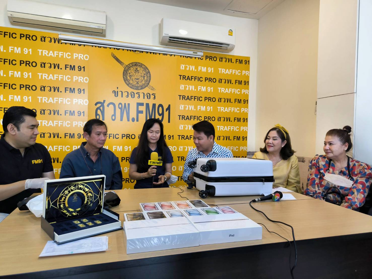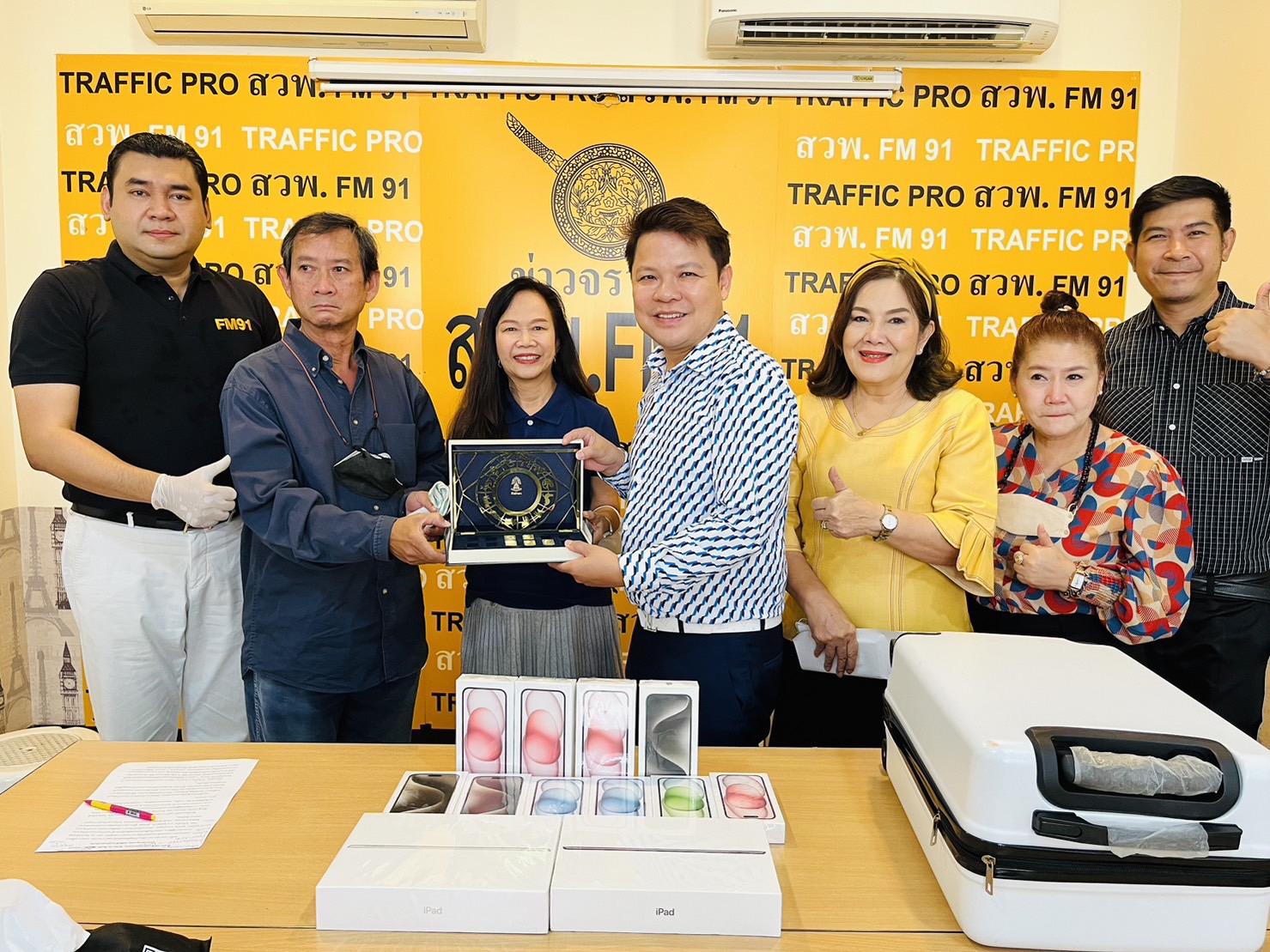 วันนี้ (17 มกราคม 2567) ที่สถานีวิทยุพิทักษ์สันติราษฎร์ สวพ.FM91 กองตำรวจสื่อสาร สำนักงานตำรวจแห่งชาติ ถนนพหลโยธิน แขวงลาดยาว เขตจตุจักร กทม. ดร.ไจตนย์ ศรีวังพล รองกรรมการผู้จัดการ บริษัทวิไลเซ็นเตอร์แอนด์ซันส์จำกัด ผู้ร่วมดำเนินงานสถานีวิทยุ สวพ.FM91 คุณสกล ถาวรกาญจน์ ประธานเจ้าหน้าที่บริหาร ฝ่ายสื่อสารองค์กร สถานีวิทยุ สวพ.FM91 พร้อมด้วย น.ส.จิตต์ผ่องใส ศรีวังพล ผู้อำนวยการฝ่ายทรัพยากรบุคคลและจิตอาสาสัมพันธ์ สวพ.FM91 ร่วมเป็นสักขีพยาน ส่งมอบทองคำเเท่ง ไอโฟน และไอแพด รวมมูลค่า 7 แสนบาท คืนเจ้าของ